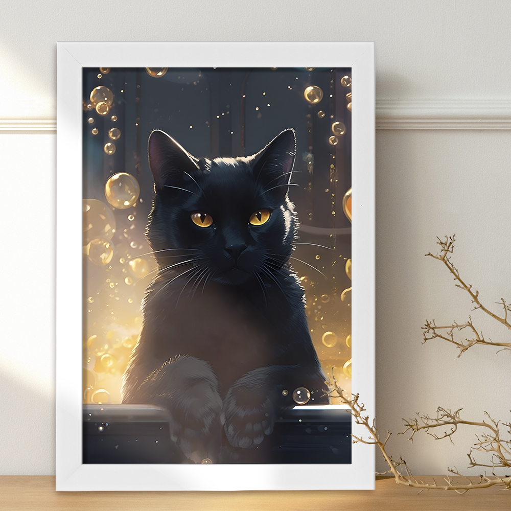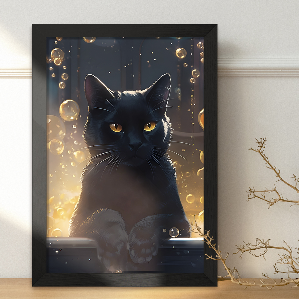 تابلو یا قاب عکس گربه سیاه خندالو در ابعاد مختلف با استفاده از بهترین برند پروفیل پی وی سی دو سانتی متری بسیار مرغوب، تولید شده اند و در مونتاژ و نصب آنها نهایت دقت در قرارگیری هر چه دقیق تر لبه ها به یکدیگر صورت گرفته است. همچنین در پشت قاب ها گیره ای برای اتصال راحت به دیوار تعبیه شده است.