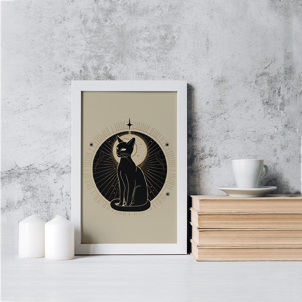 تابلو یا قاب عکس گربه سیاه خندالو در ابعاد مختلف با استفاده از بهترین برند پروفیل پی وی سی دو سانتی متری بسیار مرغوب، تولید شده اند و در مونتاژ و نصب آنها نهایت دقت در قرارگیری هر چه دقیق تر لبه ها به یکدیگر صورت گرفته است. همچنین در پشت قاب ها گیره ای برای اتصال راحت به دیوار تعبیه شده است.