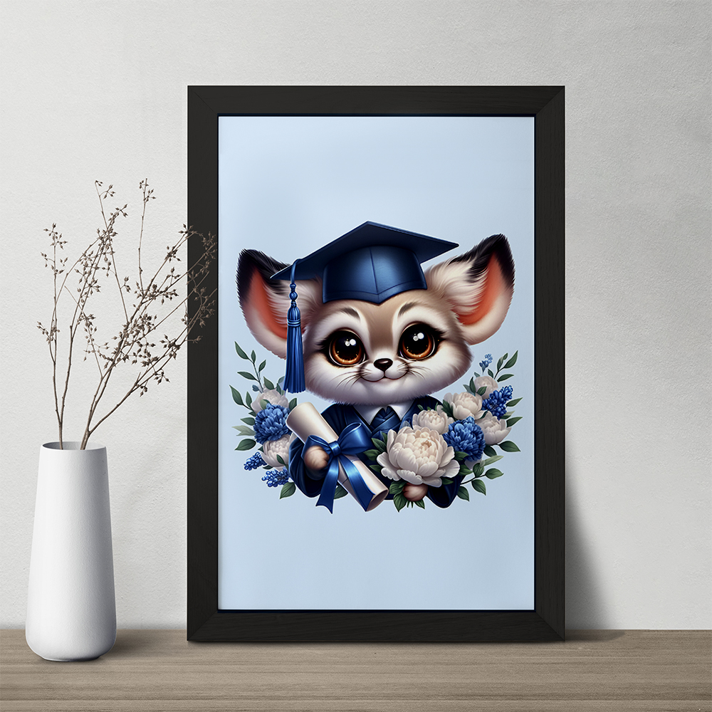 تابلو یا قاب عکس گربه فارغ التحصیل خندالو در ابعاد مختلف با استفاده از بهترین برند پروفیل پی وی سی دو سانتی متری بسیار مرغوب، تولید شده اند و در مونتاژ و نصب آنها نهایت دقت در قرارگیری هر چه دقیق تر لبه ها به یکدیگر صورت گرفته است. همچنین در پشت قاب ها گیره ای برای اتصال راحت به دیوار تعبیه شده است. چاپ طرح تابلوی گربه فارغ التحصیل با بالاترین کیفیت بوسیله چاپگرهای دیجیتال شش رنگ و کاغذ با کیفیت عکاسی انجام شده و بر روی آن شیشه ای با کیفیت و شفاف در سطح قاب قرار گرفته که از کاغذ عکس محافظت میکند. بسته بندی تابلوها جعبه های مقاوم و محکمی بوده که علاوه بر محافظتی که از بدنه قاب می کند، ظاهر جذابی دارد و تابلوی گربه فارغ التحصیل را بدل به محصولی مناسب هدیه کرده است. تابلوهای خندالو با تنوع طرحی بسیار بالا شامل تابلو های دکوراتیو قابل استفاده در اتاق کودک، محل کار و منازل می باشد که سلیقه هر مخاطبی را پوشش می دهد، ضمن اینکه امکان تعویض عکس موجود در قاب وجود داشته و می توان عکس های خانوادگی و … را نیز در آن قرار داد.
