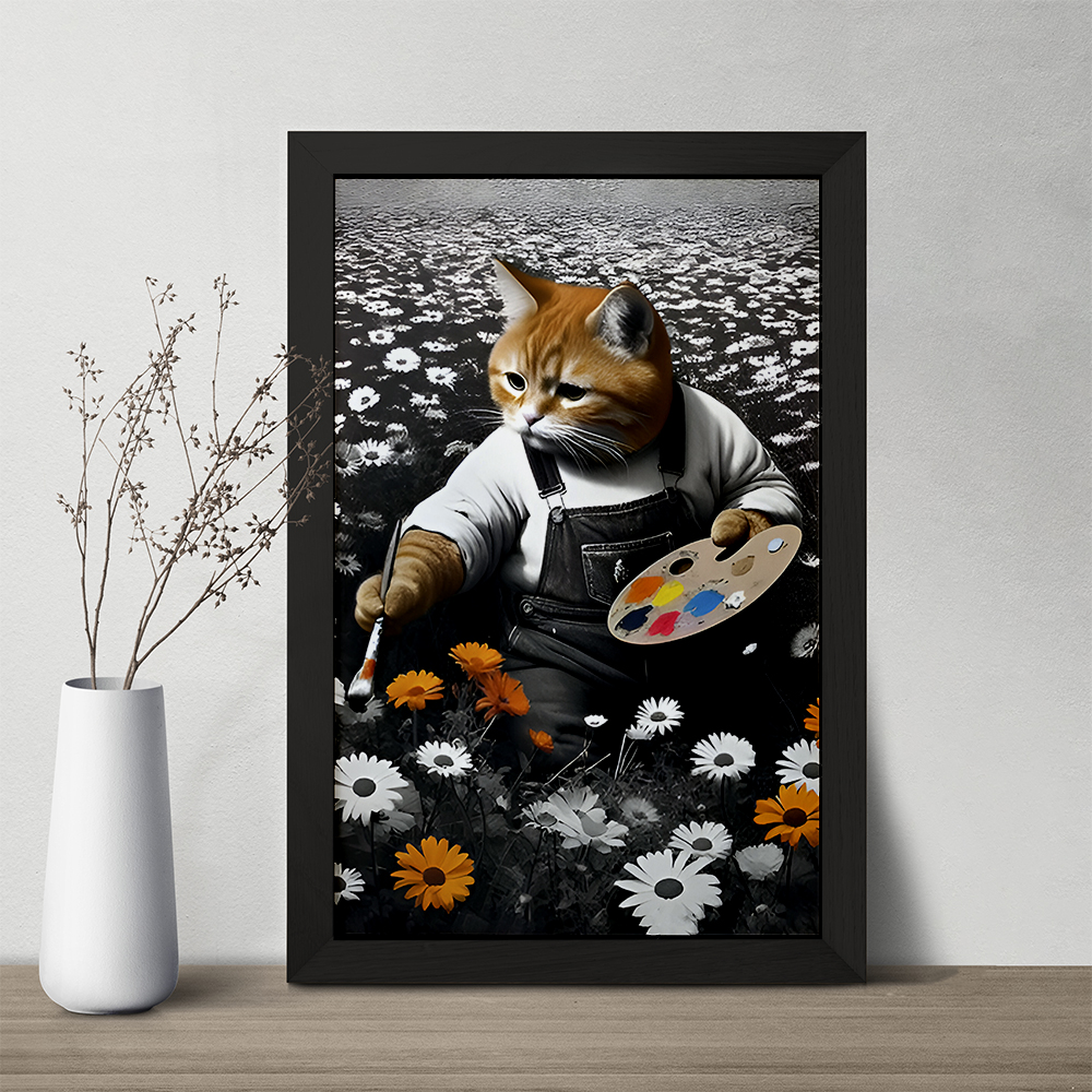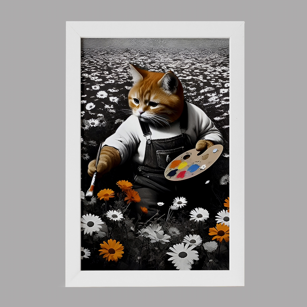 تابلو یا قاب عکس گربه نقاش خندالو در ابعاد مختلف با استفاده از بهترین برند پروفیل پی وی سی دو سانتی متری بسیار مرغوب، تولید شده اند و در مونتاژ و نصب آنها نهایت دقت در قرارگیری هر چه دقیق تر لبه ها به یکدیگر صورت گرفته است. همچنین در پشت قاب ها گیره ای برای اتصال راحت به دیوار تعبیه شده است.