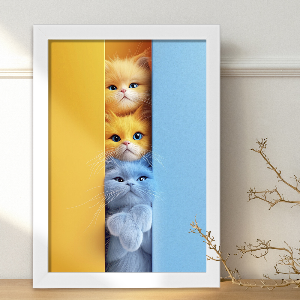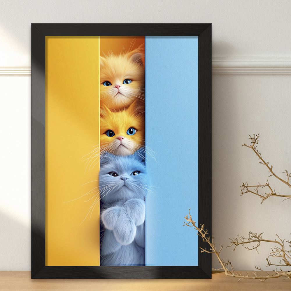 تابلو یا قاب عکس گربه های بامزه خندالو در ابعاد مختلف با استفاده از بهترین برند پروفیل پی وی سی دو سانتی متری بسیار مرغوب، تولید شده اند و در مونتاژ و نصب آنها نهایت دقت در قرارگیری هر چه دقیق تر لبه ها به یکدیگر صورت گرفته است. همچنین در پشت قاب ها گیره ای برای اتصال راحت به دیوار تعبیه شده است.