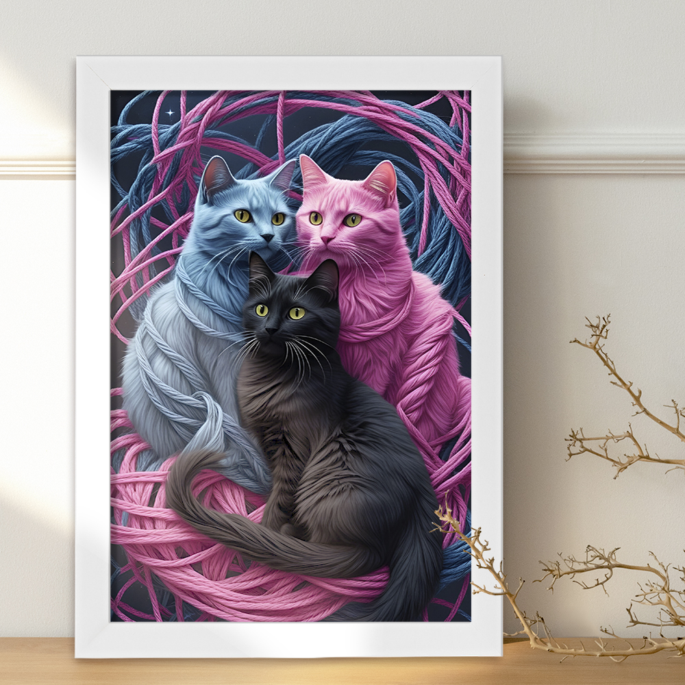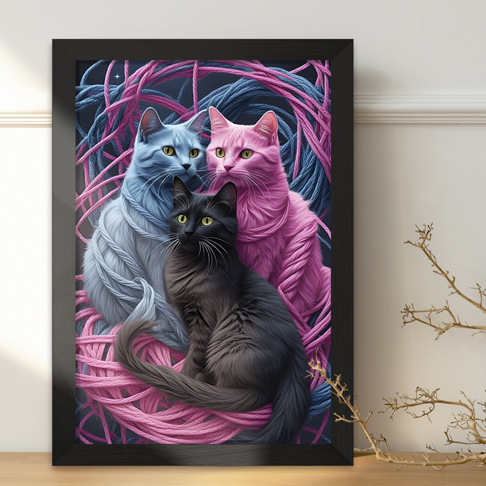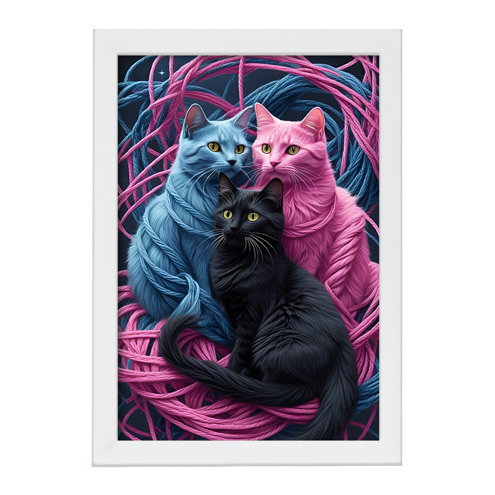 تابلو یا قاب عکس گربه های رنگی خندالو در ابعاد مختلف با استفاده از بهترین برند پروفیل پی وی سی دو سانتی متری بسیار مرغوب، تولید شده اند و در مونتاژ و نصب آنها نهایت دقت در قرارگیری هر چه دقیق تر لبه ها به یکدیگر صورت گرفته است. همچنین در پشت قاب ها گیره ای برای اتصال راحت به دیوار تعبیه شده است.