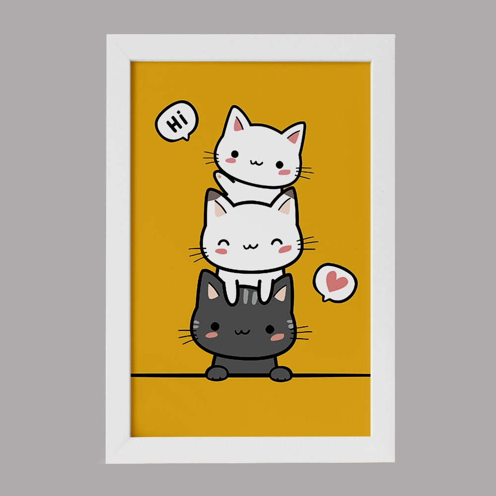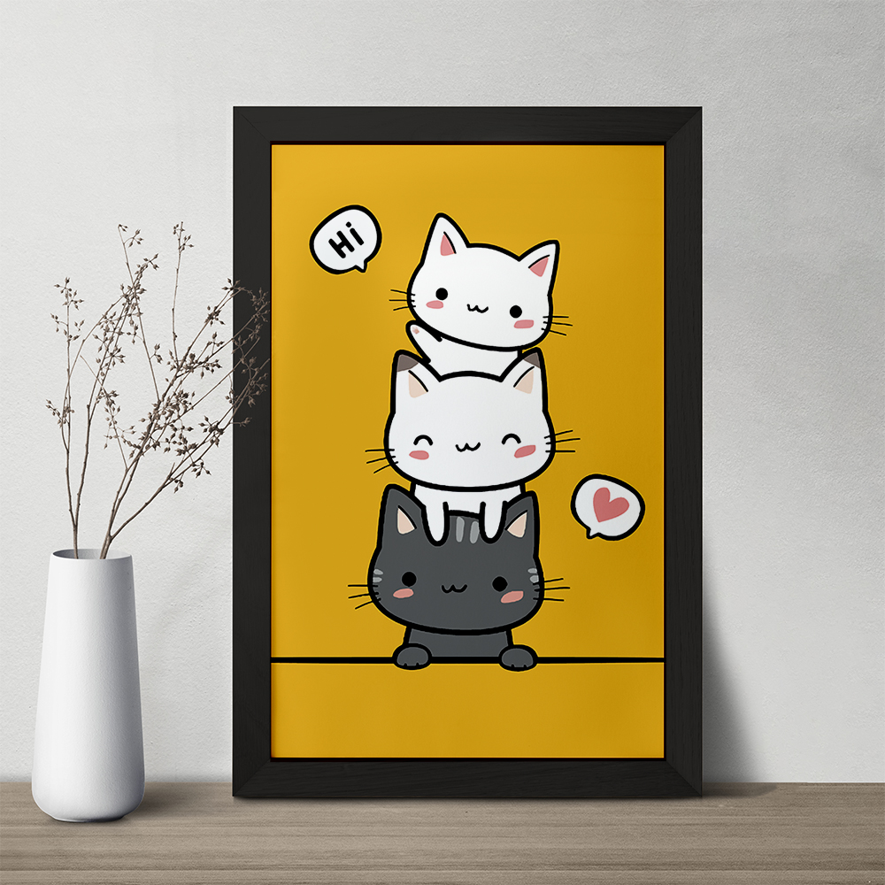 تابلو یا قاب عکس گربه های کیوت خندالو در ابعاد مختلف با استفاده از بهترین برند پروفیل پی وی سی دو سانتی متری بسیار مرغوب، تولید شده اند و در مونتاژ و نصب آنها نهایت دقت در قرارگیری هر چه دقیق تر لبه ها به یکدیگر صورت گرفته است. همچنین در پشت قاب ها گیره ای برای اتصال راحت به دیوار تعبیه شده است.