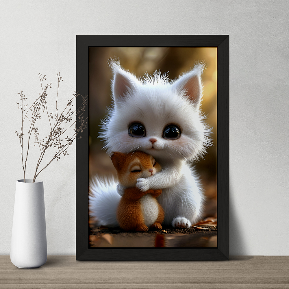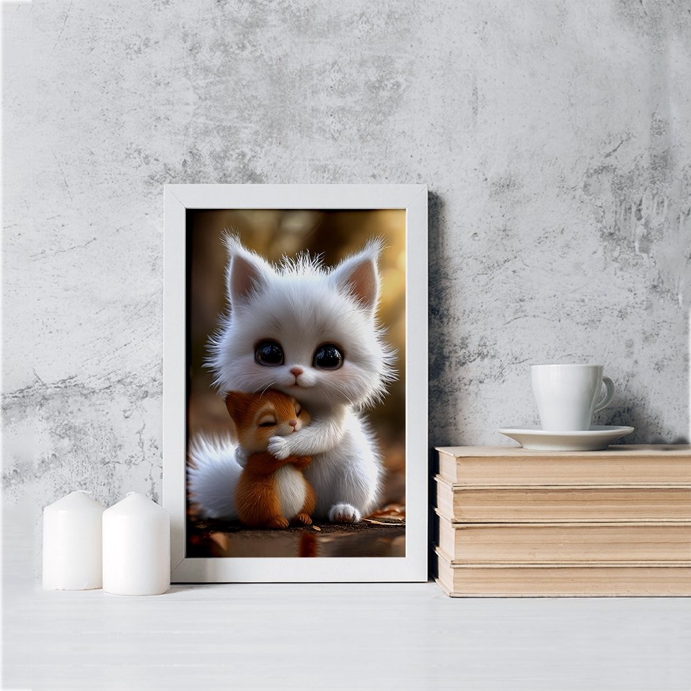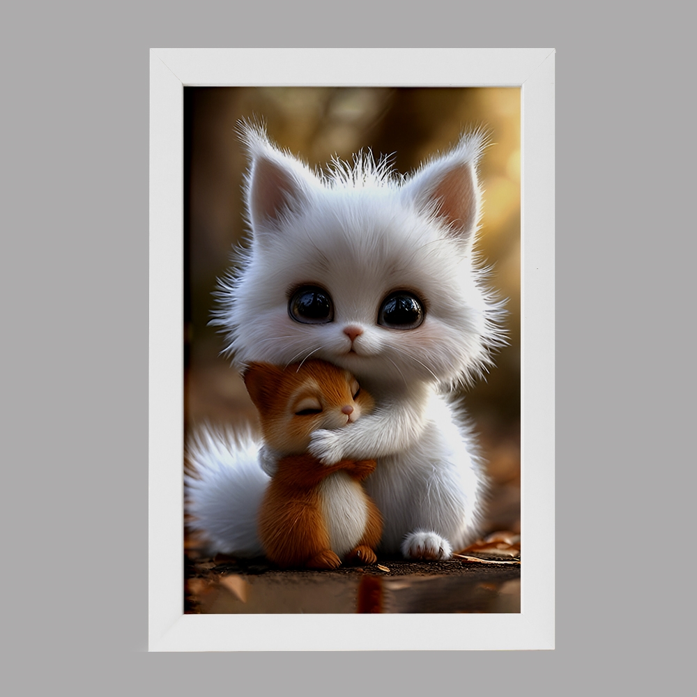 تابلو یا قاب عکس گربه و سنجاب کیوت خندالو در ابعاد مختلف با استفاده از بهترین برند پروفیل پی وی سی دو سانتی متری بسیار مرغوب، تولید شده اند و در مونتاژ و نصب آنها نهایت دقت در قرارگیری هر چه دقیق تر لبه ها به یکدیگر صورت گرفته است. همچنین در پشت قاب ها گیره ای برای اتصال راحت به دیوار تعبیه شده است. چاپ طرح تابلوی گربه و سنجاب کیوت با بالاترین کیفیت بوسیله چاپگرهای دیجیتال شش رنگ و کاغذ با کیفیت عکاسی انجام شده و بر روی آن شیشه ای با کیفیت و شفاف در سطح قاب قرار گرفته که از کاغذ عکس محافظت میکند. بسته بندی تابلوها جعبه های مقاوم و محکمی بوده که علاوه بر محافظتی که از بدنه قاب می کند، ظاهر جذابی دارد و تابلوی گربه و سنجاب کیوت را بدل به محصولی مناسب هدیه کرده است. تابلوهای خندالو با تنوع طرحی بسیار بالا شامل تابلو های دکوراتیو قابل استفاده در اتاق کودک، محل کار و منازل می باشد که سلیقه هر مخاطبی را پوشش می دهد، ضمن اینکه امکان تعویض عکس موجود در قاب وجود داشته و می توان عکس های خانوادگی و … را نیز در آن قرار داد.