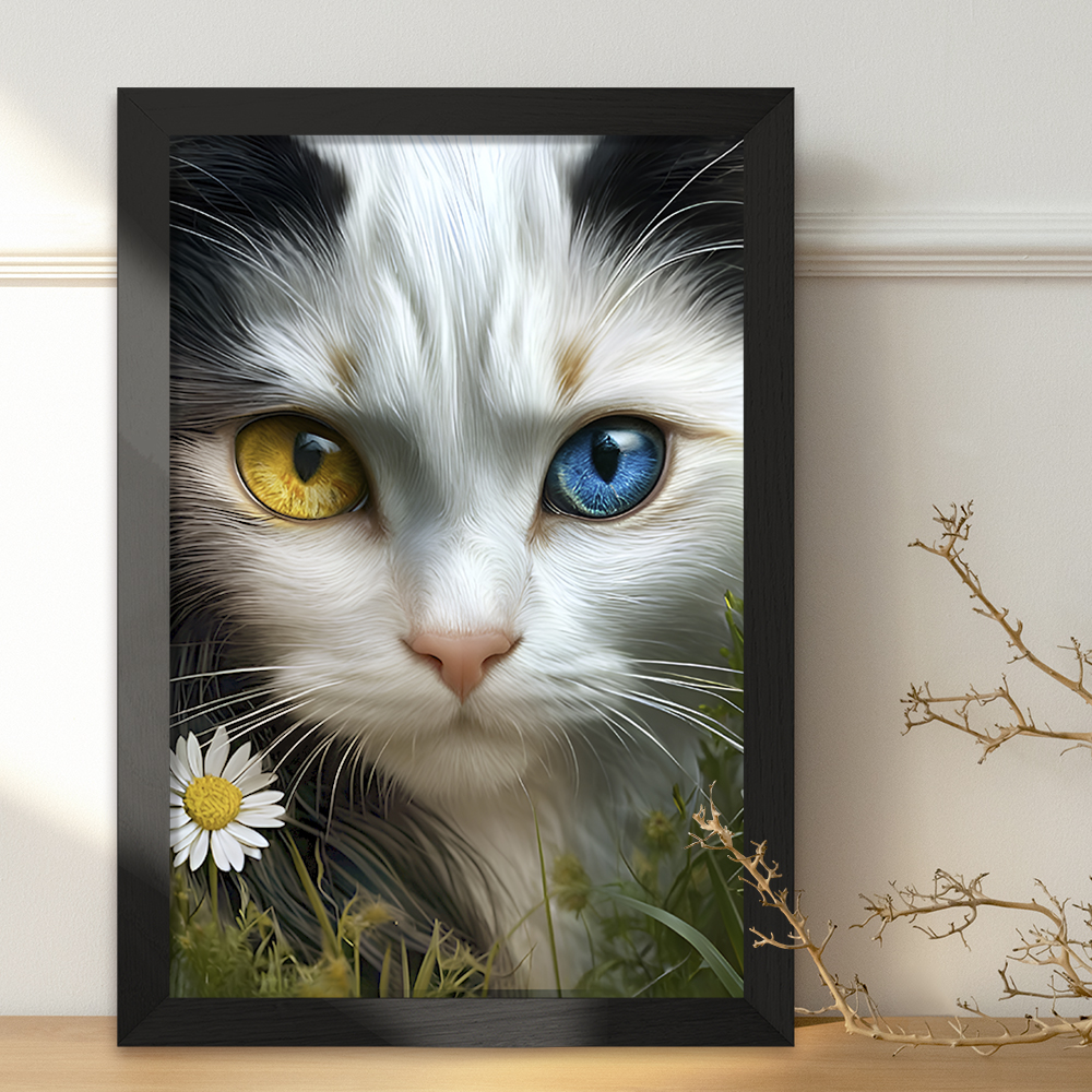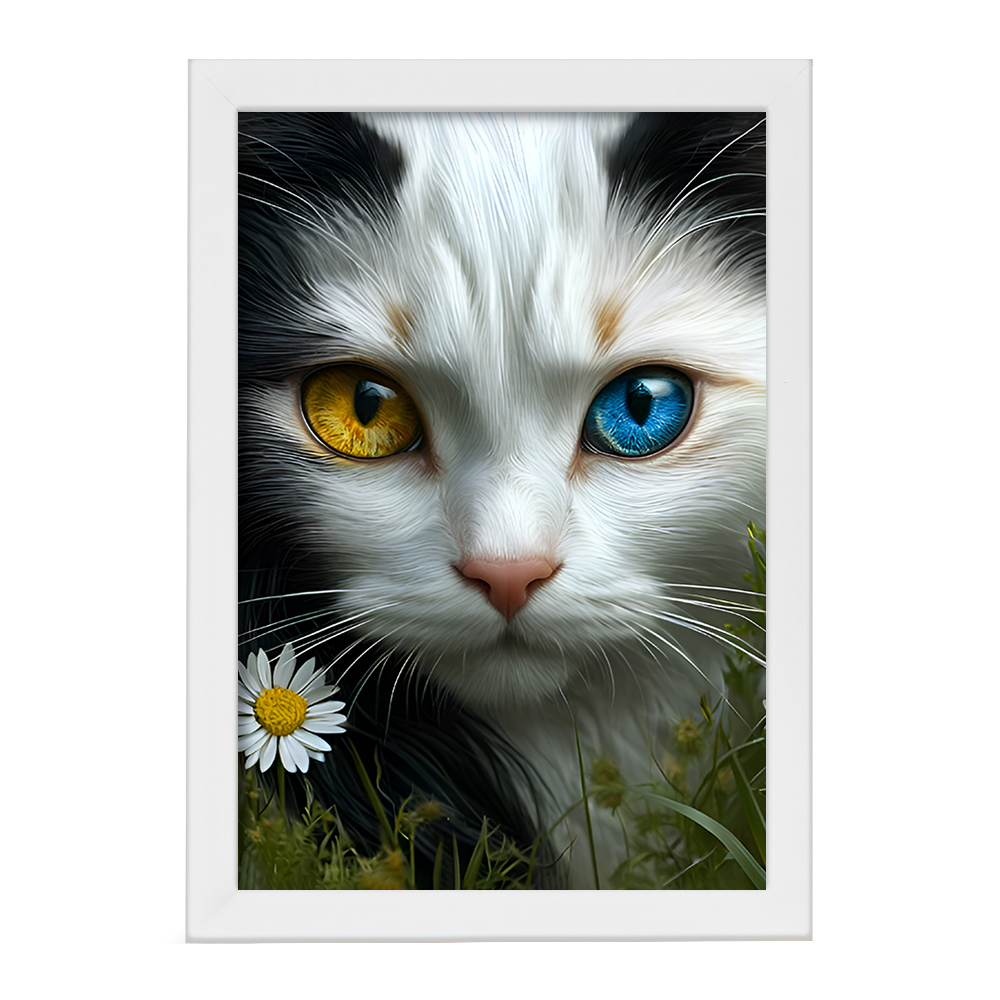 تابلو یا قاب عکس گربه چشم رنگی خندالو در ابعاد مختلف با استفاده از بهترین برند پروفیل پی وی سی دو سانتی متری بسیار مرغوب، تولید شده اند و در مونتاژ و نصب آنها نهایت دقت در قرارگیری هر چه دقیق تر لبه ها به یکدیگر صورت گرفته است. همچنین در پشت قاب ها گیره ای برای اتصال راحت به دیوار تعبیه شده است. چاپ طرح تابلوی گربه چشم رنگی با بالاترین کیفیت بوسیله چاپگرهای دیجیتال شش رنگ و کاغذ با کیفیت عکاسی انجام شده و بر روی آن شیشه ای با کیفیت و شفاف در سطح قاب قرار گرفته که از کاغذ عکس محافظت میکند. بسته بندی تابلوها جعبه های مقاوم و محکمی بوده که علاوه بر محافظتی که از بدنه قاب می کند، ظاهر جذابی دارد و تابلوی گربه چشم رنگی را بدل به محصولی مناسب هدیه کرده است. تابلوهای خندالو با تنوع طرحی بسیار بالا شامل تابلو های دکوراتیو قابل استفاده در اتاق کودک، محل کار و منازل می باشد که سلیقه هر مخاطبی را پوشش می دهد، ضمن اینکه امکان تعویض عکس موجود در قاب وجود داشته و می توان عکس های خانوادگی و … را نیز در آن قرار داد.