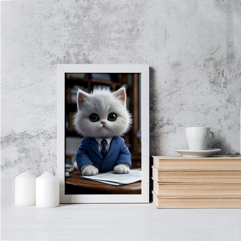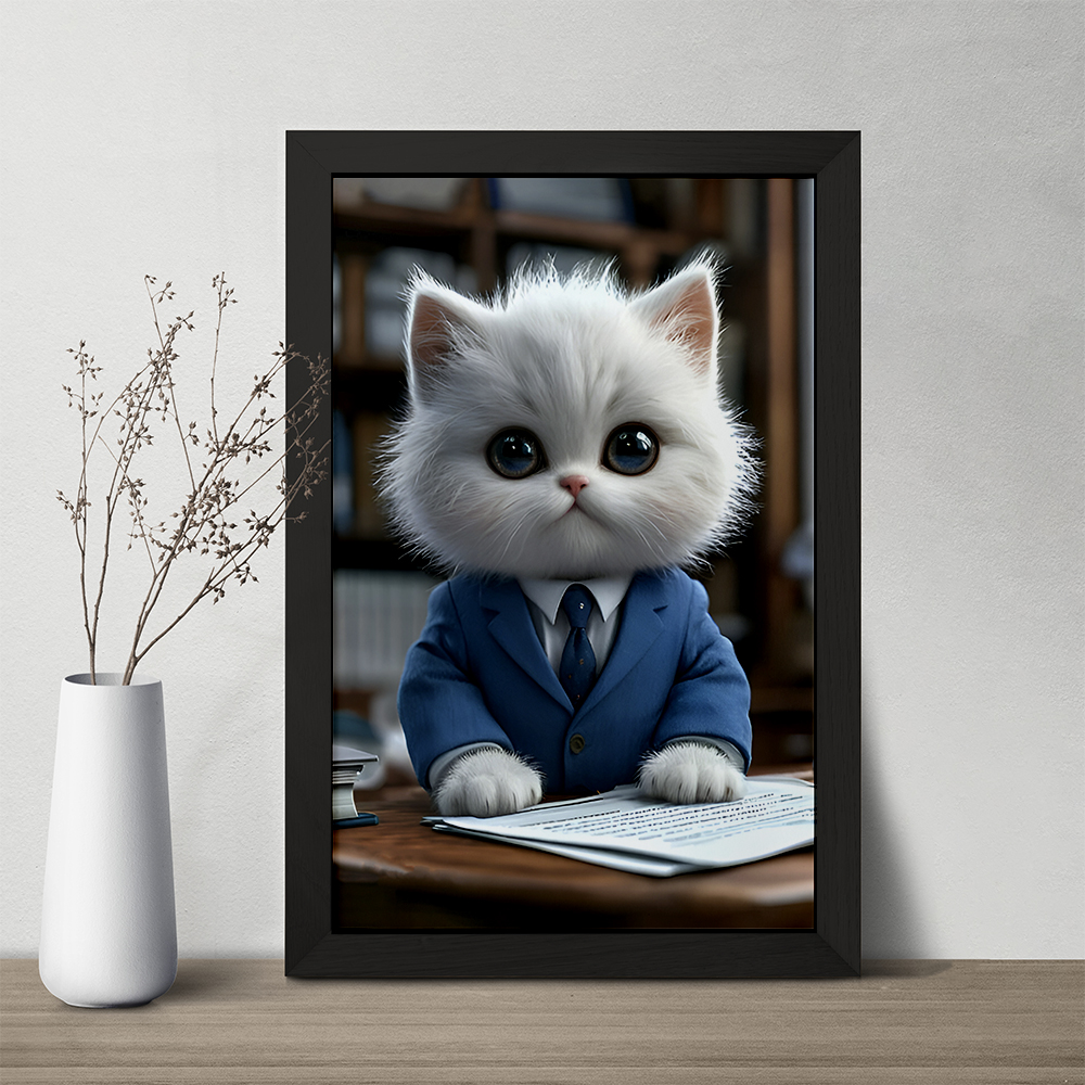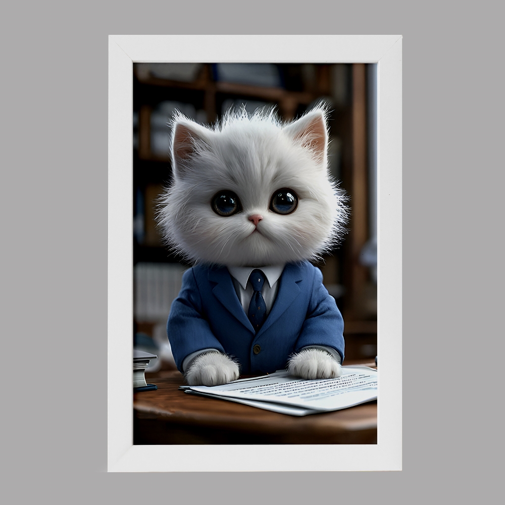 تابلو یا قاب عکس گربه کارمند خندالو در ابعاد مختلف با استفاده از بهترین برند پروفیل پی وی سی دو سانتی متری بسیار مرغوب، تولید شده اند و در مونتاژ و نصب آنها نهایت دقت در قرارگیری هر چه دقیق تر لبه ها به یکدیگر صورت گرفته است. همچنین در پشت قاب ها گیره ای برای اتصال راحت به دیوار تعبیه شده است. چاپ طرح تابلوی گربه کارمند با بالاترین کیفیت بوسیله چاپگرهای دیجیتال شش رنگ و کاغذ با کیفیت عکاسی انجام شده و بر روی آن شیشه ای با کیفیت و شفاف در سطح قاب قرار گرفته که از کاغذ عکس محافظت میکند. بسته بندی تابلوها جعبه های مقاوم و محکمی بوده که علاوه بر محافظتی که از بدنه قاب می کند، ظاهر جذابی دارد و تابلوی گربه کارمند را بدل به محصولی مناسب هدیه کرده است. تابلوهای خندالو با تنوع طرحی بسیار بالا شامل تابلو های دکوراتیو قابل استفاده در اتاق کودک، محل کار و منازل می باشد که سلیقه هر مخاطبی را پوشش می دهد، ضمن اینکه امکان تعویض عکس موجود در قاب وجود داشته و می توان عکس های خانوادگی و … را نیز در آن قرار داد.