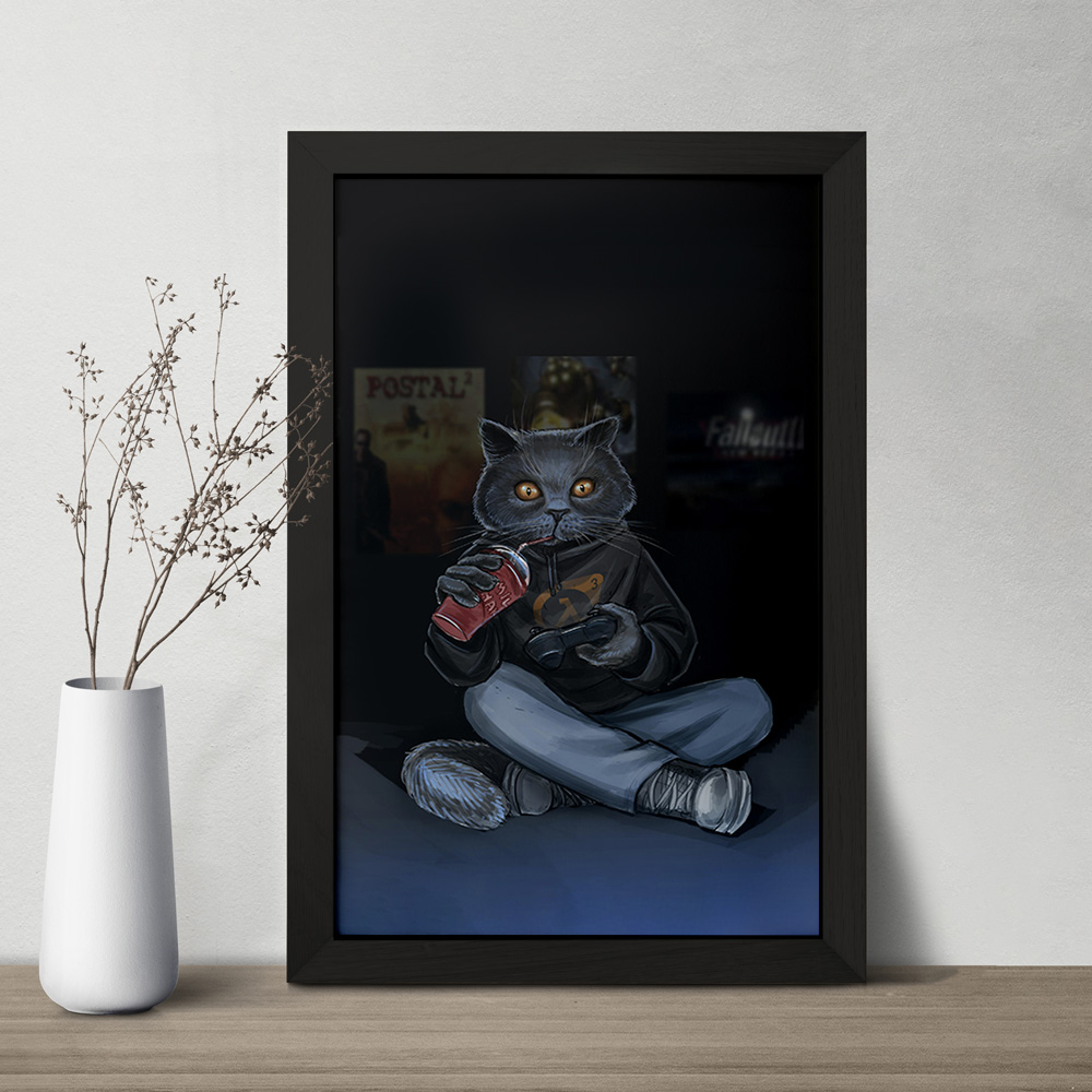 تابلو یا قاب عکس گربه گیمر خندالو در ابعاد مختلف با استفاده از بهترین برند پروفیل پی وی سی دو سانتی متری بسیار مرغوب، تولید شده اند و در مونتاژ و نصب آنها نهایت دقت در قرارگیری هر چه دقیق تر لبه ها به یکدیگر صورت گرفته است. همچنین در پشت قاب ها گیره ای برای اتصال راحت به دیوار تعبیه شده است. چاپ طرح تابلوی گربه گیمر با بالاترین کیفیت بوسیله چاپگرهای دیجیتال شش رنگ و کاغذ با کیفیت عکاسی انجام شده و بر روی آن شیشه ای با کیفیت و شفاف در سطح قاب قرار گرفته که از کاغذ عکس محافظت میکند. بسته بندی تابلوها جعبه های مقاوم و محکمی بوده که علاوه بر محافظتی که از بدنه قاب می کند، ظاهر جذابی دارد و تابلوی گربه گیمر را بدل به محصولی مناسب هدیه کرده است. تابلوهای خندالو با تنوع طرحی بسیار بالا شامل تابلو های دکوراتیو قابل استفاده در اتاق کودک، محل کار و منازل می باشد که سلیقه هر مخاطبی را پوشش می دهد، ضمن اینکه امکان تعویض عکس موجود در قاب وجود داشته و می توان عکس های خانوادگی و … را نیز در آن قرار داد.