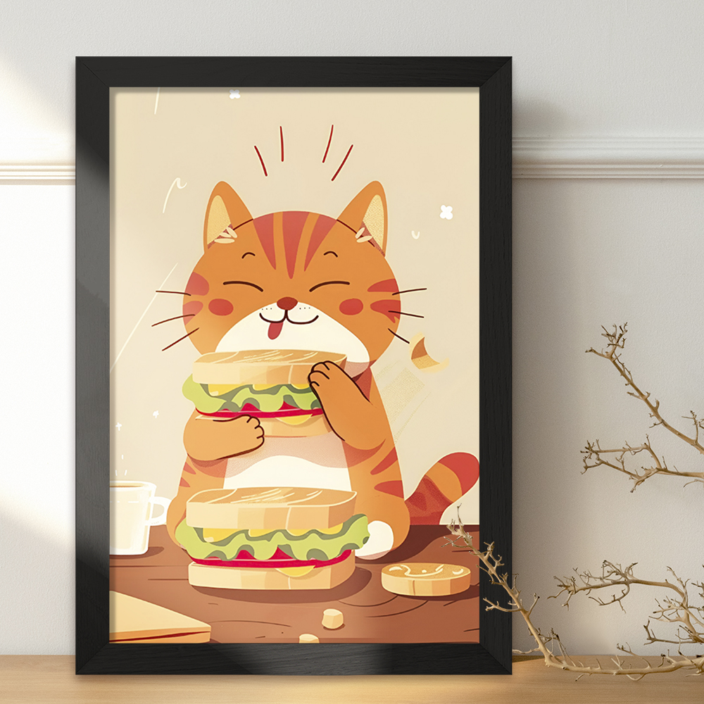 تابلو یا قاب عکس گربه ی شکمو خندالو در ابعاد مختلف با استفاده از بهترین برند پروفیل پی وی سی دو سانتی متری بسیار مرغوب، تولید شده اند و در مونتاژ و نصب آنها نهایت دقت در قرارگیری هر چه دقیق تر لبه ها به یکدیگر صورت گرفته است. همچنین در پشت قاب ها گیره ای برای اتصال راحت به دیوار تعبیه شده است. چاپ طرح تابلوی گربه ی شکمو با بالاترین کیفیت بوسیله چاپگرهای دیجیتال شش رنگ و کاغذ با کیفیت عکاسی انجام شده و بر روی آن شیشه ای با کیفیت و شفاف در سطح قاب قرار گرفته که از کاغذ عکس محافظت میکند. بسته بندی تابلوها جعبه های مقاوم و محکمی بوده که علاوه بر محافظتی که از بدنه قاب می کند، ظاهر جذابی دارد و تابلوی گربه ی شکمو را بدل به محصولی مناسب هدیه کرده است. تابلوهای خندالو با تنوع طرحی بسیار بالا شامل تابلو های دکوراتیو قابل استفاده در اتاق کودک، محل کار و منازل می باشد که سلیقه هر مخاطبی را پوشش می دهد، ضمن اینکه امکان تعویض عکس موجود در قاب وجود داشته و می توان عکس های خانوادگی و … را نیز در آن قرار داد.
