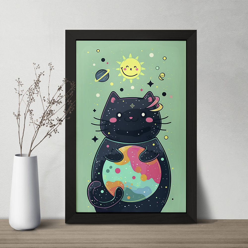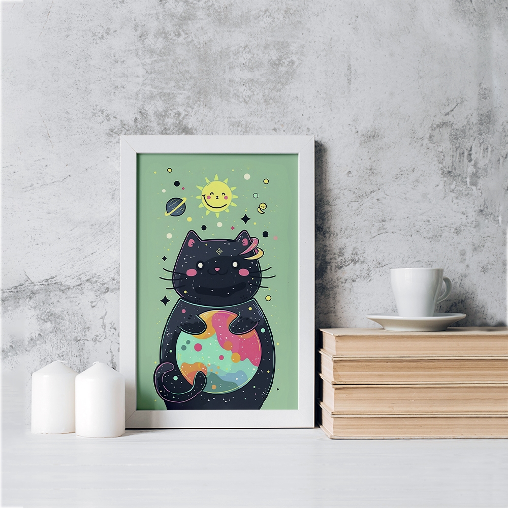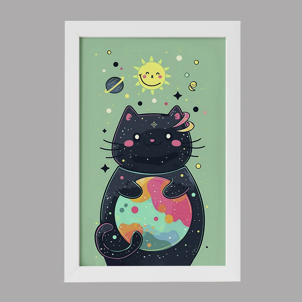 تابلو یا قاب عکس گربه ی فضایی خندالو در ابعاد مختلف با استفاده از بهترین برند پروفیل پی وی سی دو سانتی متری بسیار مرغوب، تولید شده اند و در مونتاژ و نصب آنها نهایت دقت در قرارگیری هر چه دقیق تر لبه ها به یکدیگر صورت گرفته است. همچنین در پشت قاب ها گیره ای برای اتصال راحت به دیوار تعبیه شده است.