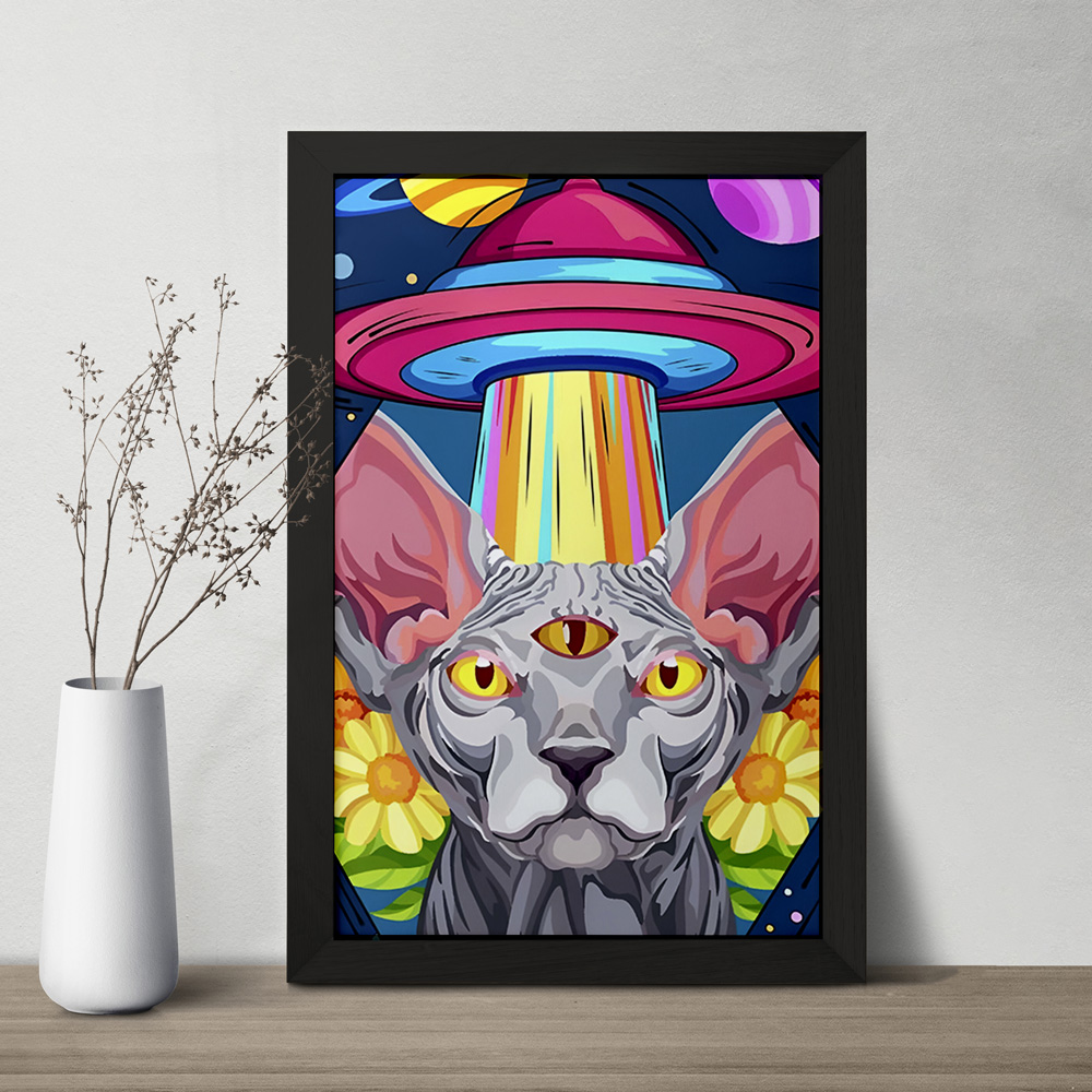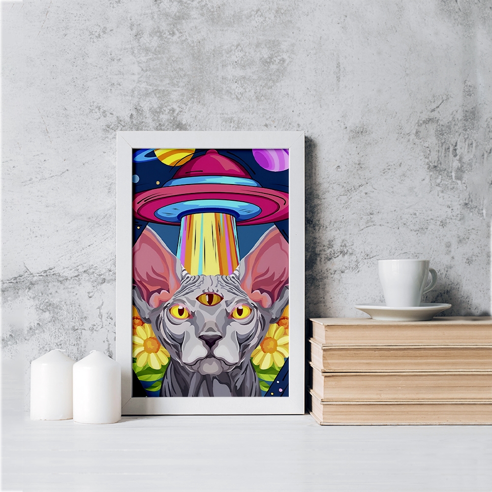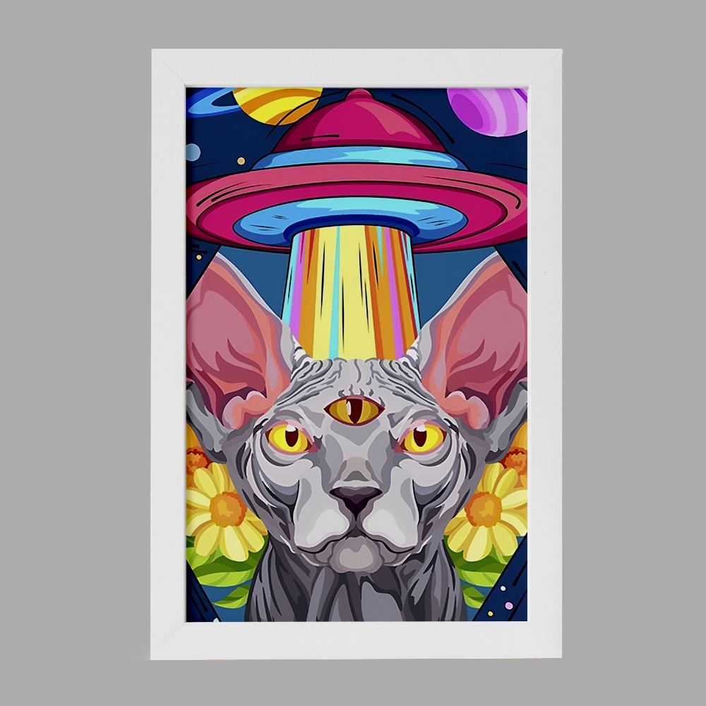 تابلو یا قاب عکس گربه ی فضایی خندالو در ابعاد مختلف با استفاده از بهترین برند پروفیل پی وی سی دو سانتی متری بسیار مرغوب، تولید شده اند و در مونتاژ و نصب آنها نهایت دقت در قرارگیری هر چه دقیق تر لبه ها به یکدیگر صورت گرفته است. همچنین در پشت قاب ها گیره ای برای اتصال راحت به دیوار تعبیه شده است. چاپ طرح تابلوی گربه ی فضایی با بالاترین کیفیت بوسیله چاپگرهای دیجیتال شش رنگ و کاغذ با کیفیت عکاسی انجام شده و بر روی آن شیشه ای با کیفیت و شفاف در سطح قاب قرار گرفته که از کاغذ عکس محافظت میکند. بسته بندی تابلوها جعبه های مقاوم و محکمی بوده که علاوه بر محافظتی که از بدنه قاب می کند، ظاهر جذابی دارد و تابلوی گربه ی فضایی را بدل به محصولی مناسب هدیه کرده است. تابلوهای خندالو با تنوع طرحی بسیار بالا شامل تابلو های دکوراتیو قابل استفاده در اتاق کودک، محل کار و منازل می باشد که سلیقه هر مخاطبی را پوشش می دهد، ضمن اینکه امکان تعویض عکس موجود در قاب وجود داشته و می توان عکس های خانوادگی و … را نیز در آن قرار داد.