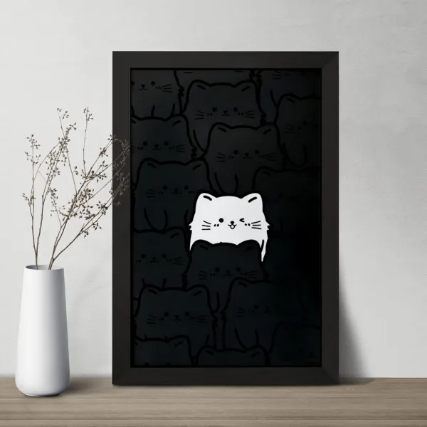 تابلو یا قاب عکس گربه (Cat) خندالو در ابعاد مختلف با استفاده از بهترین برند پروفیل پی وی سی دو سانتی متری بسیار مرغوب، تولید شده اند و در مونتاژ و نصب آنها نهایت دقت در قرارگیری هر چه دقیق تر لبه ها به یکدیگر صورت گرفته است. همچنین در پشت قاب ها گیره ای برای اتصال راحت به دیوار تعبیه شده است.