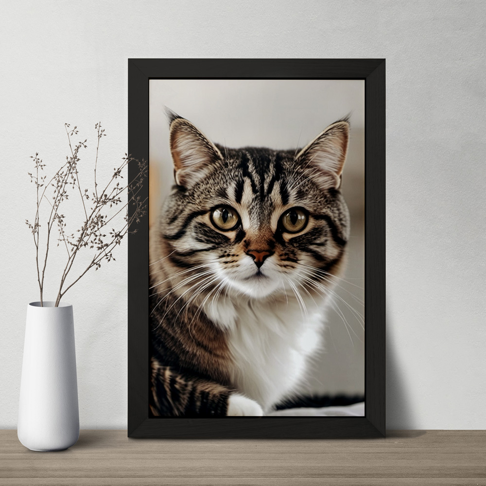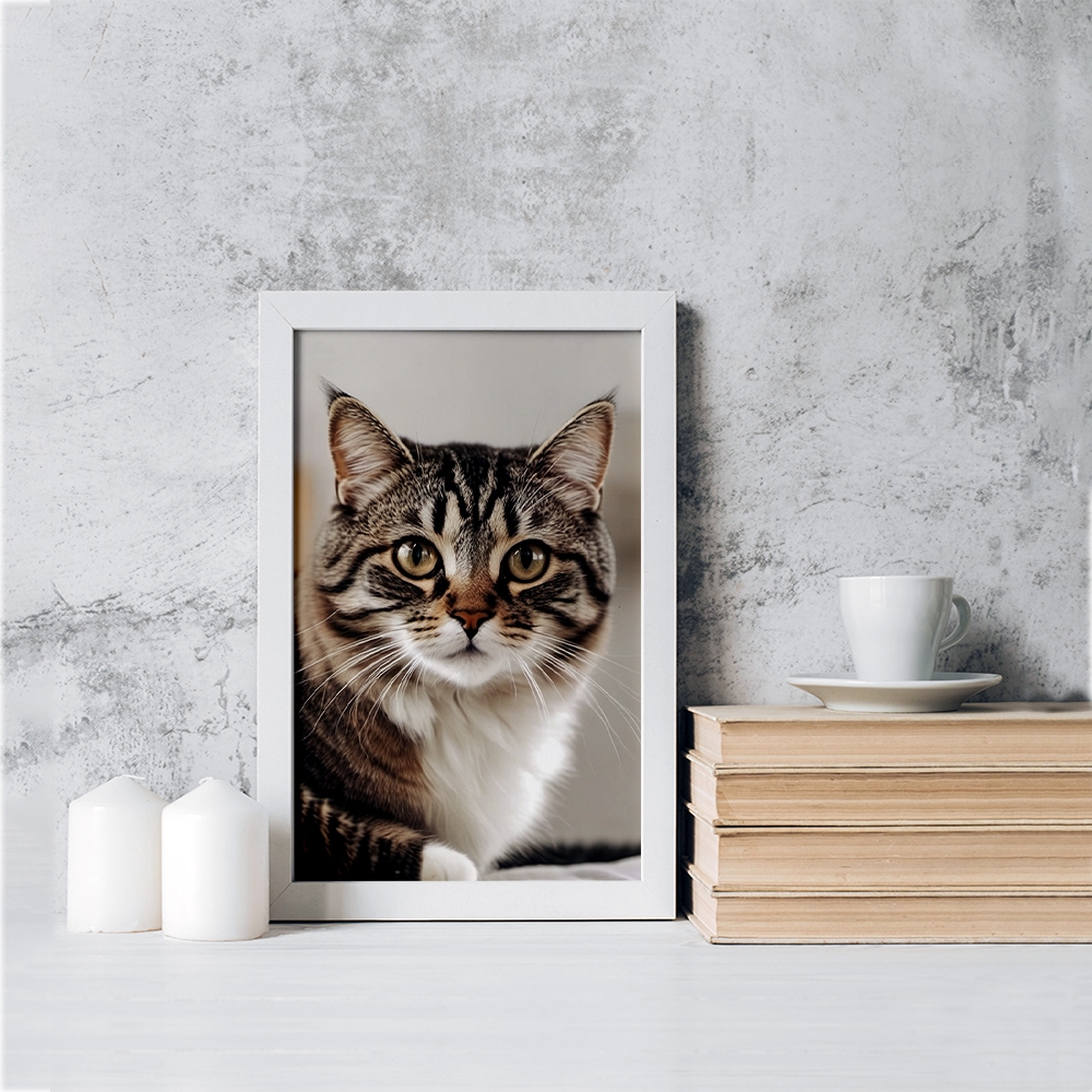 تابلو یا قاب عکس گربه (Cat) خندالو در ابعاد مختلف با استفاده از بهترین برند پروفیل پی وی سی دو سانتی متری بسیار مرغوب، تولید شده اند و در مونتاژ و نصب آنها نهایت دقت در قرارگیری هر چه دقیق تر لبه ها به یکدیگر صورت گرفته است. همچنین در پشت قاب ها گیره ای برای اتصال راحت به دیوار تعبیه شده است.