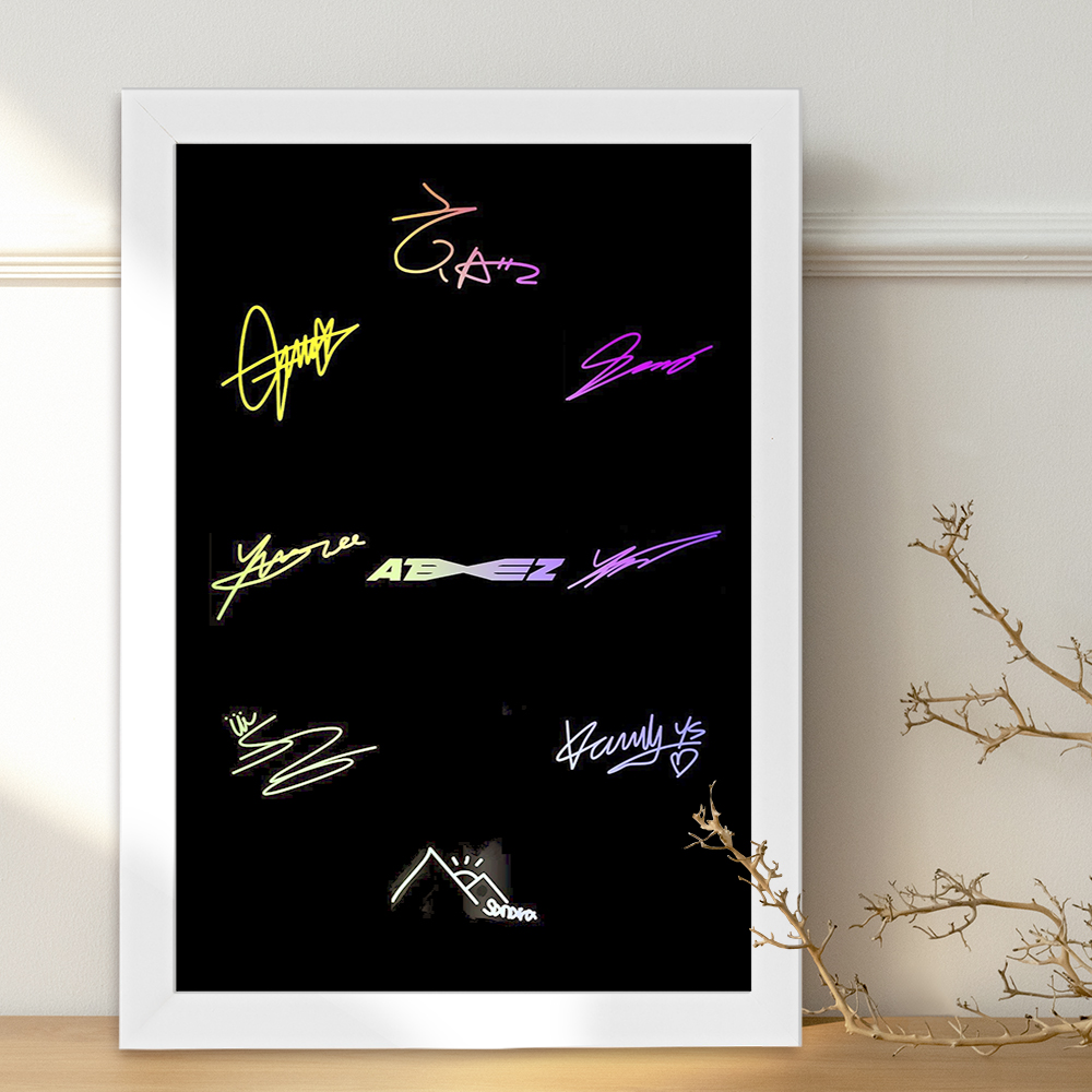 تابلو یا قاب عکس گروه ایتیز ATEEZ خندالو در ابعاد مختلف با استفاده از بهترین برند پروفیل پی وی سی دو سانتی متری بسیار مرغوب، تولید شده اند و در مونتاژ و نصب آنها نهایت دقت در قرارگیری هر چه دقیق تر لبه ها به یکدیگر صورت گرفته است. همچنین در پشت قاب ها گیره ای برای اتصال راحت به دیوار تعبیه شده است.