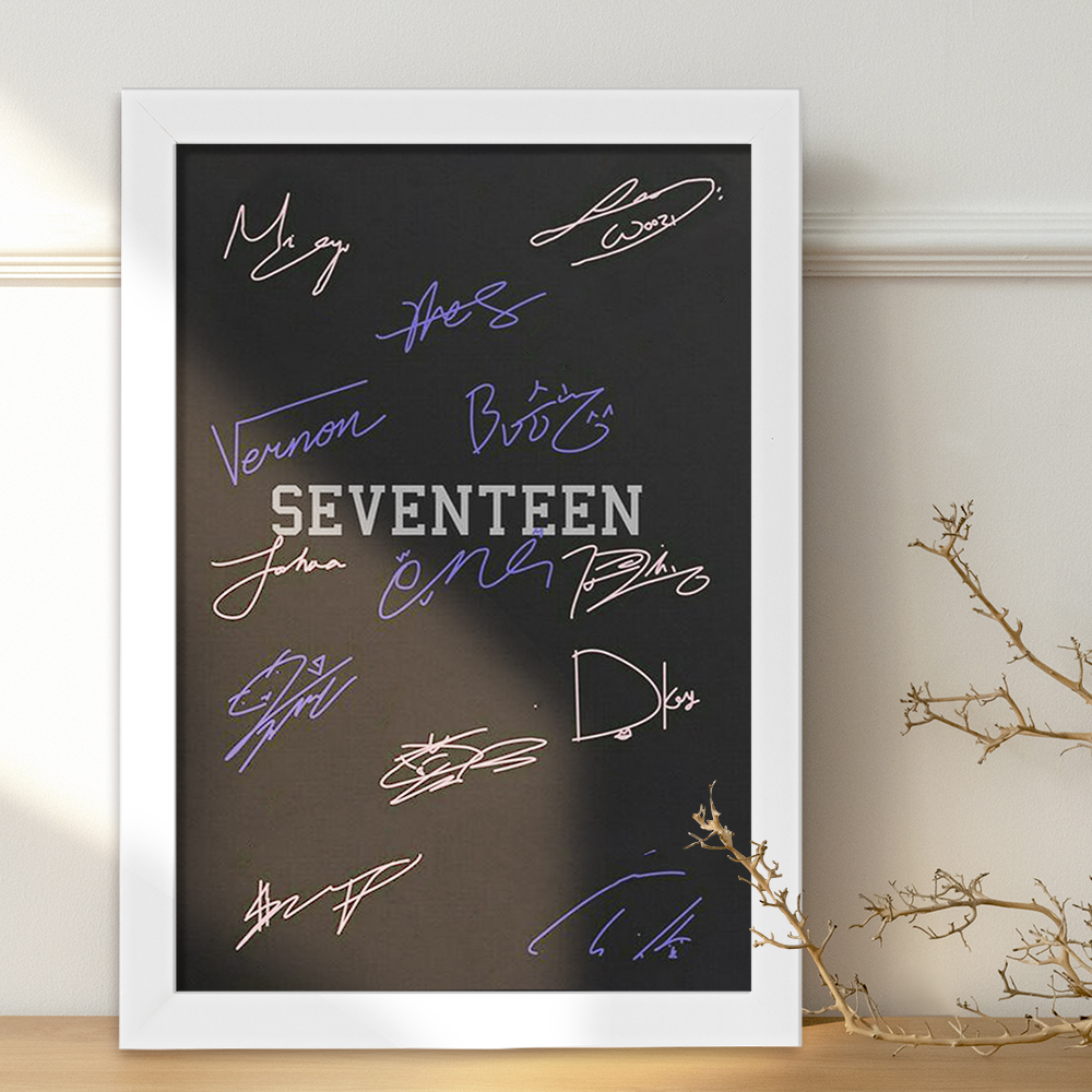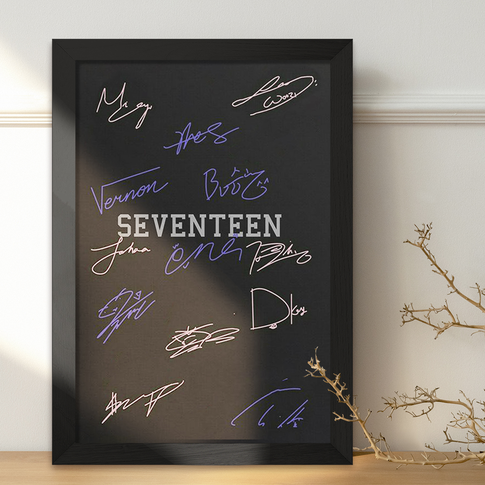 تابلو یا قاب عکس گروه سونتین Seventeen خندالو در ابعاد مختلف با استفاده از بهترین برند پروفیل پی وی سی دو سانتی متری بسیار مرغوب، تولید شده اند و در مونتاژ و نصب آنها نهایت دقت در قرارگیری هر چه دقیق تر لبه ها به یکدیگر صورت گرفته است. همچنین در پشت قاب ها گیره ای برای اتصال راحت به دیوار تعبیه شده است.