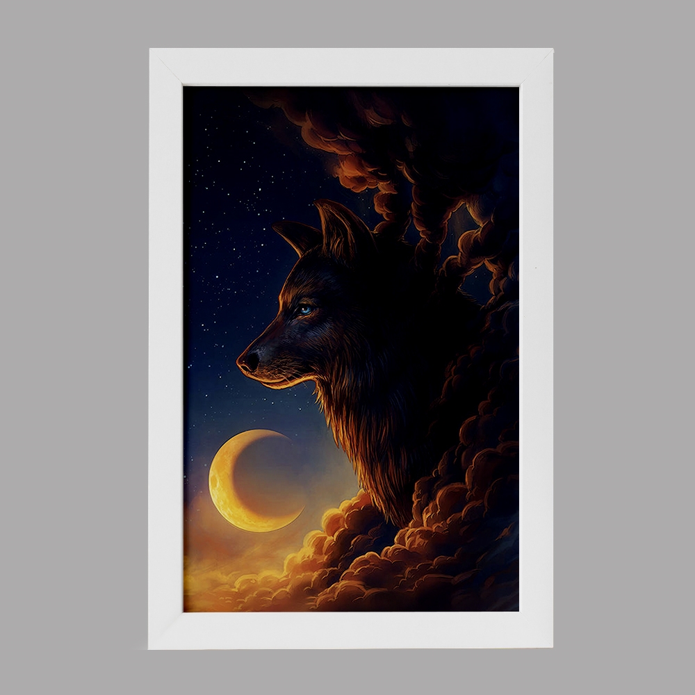 تابلو یا قاب عکس گرگ و ماه خندالو در ابعاد مختلف با استفاده از بهترین برند پروفیل پی وی سی دو سانتی متری بسیار مرغوب، تولید شده اند و در مونتاژ و نصب آنها نهایت دقت در قرارگیری هر چه دقیق تر لبه ها به یکدیگر صورت گرفته است. همچنین در پشت قاب ها گیره ای برای اتصال راحت به دیوار تعبیه شده است. چاپ طرح تابلوی گرگ و ماه با بالاترین کیفیت بوسیله چاپگرهای دیجیتال شش رنگ و کاغذ با کیفیت عکاسی انجام شده و بر روی آن شیشه ای با کیفیت و شفاف در سطح قاب قرار گرفته که از کاغذ عکس محافظت میکند. بسته بندی تابلوها جعبه های مقاوم و محکمی بوده که علاوه بر محافظتی که از بدنه قاب می کند، ظاهر جذابی دارد و تابلوی گرگ و ماه را بدل به محصولی مناسب هدیه کرده است. تابلوهای خندالو با تنوع طرحی بسیار بالا شامل تابلو های دکوراتیو قابل استفاده در اتاق کودک، محل کار و منازل می باشد که سلیقه هر مخاطبی را پوشش می دهد، ضمن اینکه امکان تعویض عکس موجود در قاب وجود داشته و می توان عکس های خانوادگی و … را نیز در آن قرار داد.