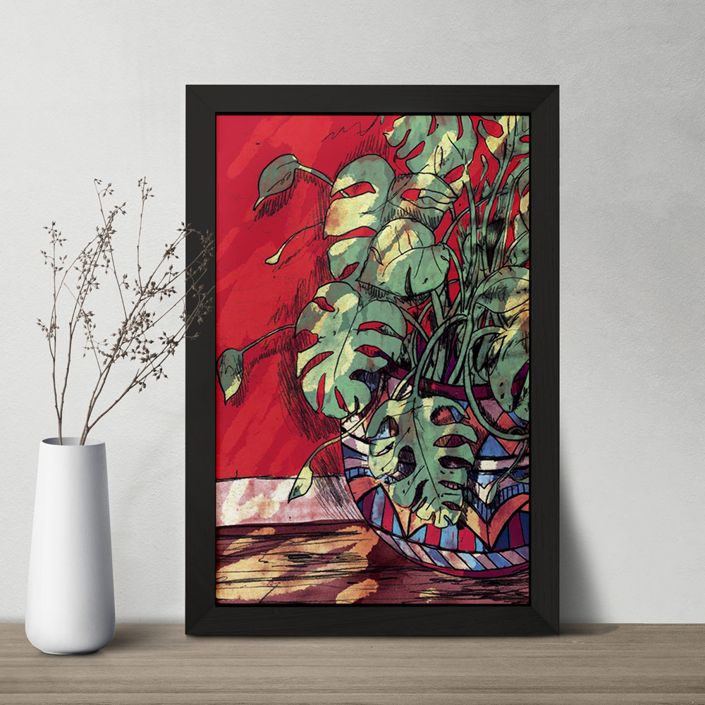 تابلو یا قاب عکس گلدان برگ انجیری خندالو در ابعاد مختلف با استفاده از بهترین برند پروفیل پی وی سی دو سانتی متری بسیار مرغوب، تولید شده اند و در مونتاژ و نصب آنها نهایت دقت در قرارگیری هر چه دقیق تر لبه ها به یکدیگر صورت گرفته است. همچنین در پشت قاب ها گیره ای برای اتصال راحت به دیوار تعبیه شده است. چاپ طرح تابلوی گلدان برگ انجیری با بالاترین کیفیت بوسیله چاپگرهای دیجیتال شش رنگ و کاغذ با کیفیت عکاسی انجام شده و بر روی آن شیشه ای با کیفیت و شفاف در سطح قاب قرار گرفته که از کاغذ عکس محافظت میکند. بسته بندی تابلوها جعبه های مقاوم و محکمی بوده که علاوه بر محافظتی که از بدنه قاب می کند، ظاهر جذابی دارد و تابلوی گلدان برگ انجیری را بدل به محصولی مناسب هدیه کرده است. تابلوهای خندالو با تنوع طرحی بسیار بالا شامل تابلو های دکوراتیو قابل استفاده در اتاق کودک، محل کار و منازل می باشد که سلیقه هر مخاطبی را پوشش می دهد، ضمن اینکه امکان تعویض عکس موجود در قاب وجود داشته و می توان عکس های خانوادگی و … را نیز در آن قرار داد.