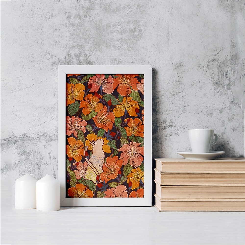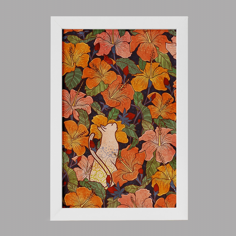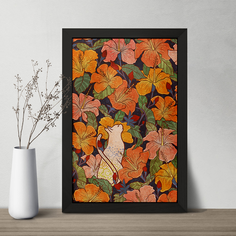 تابلو گل و گربه