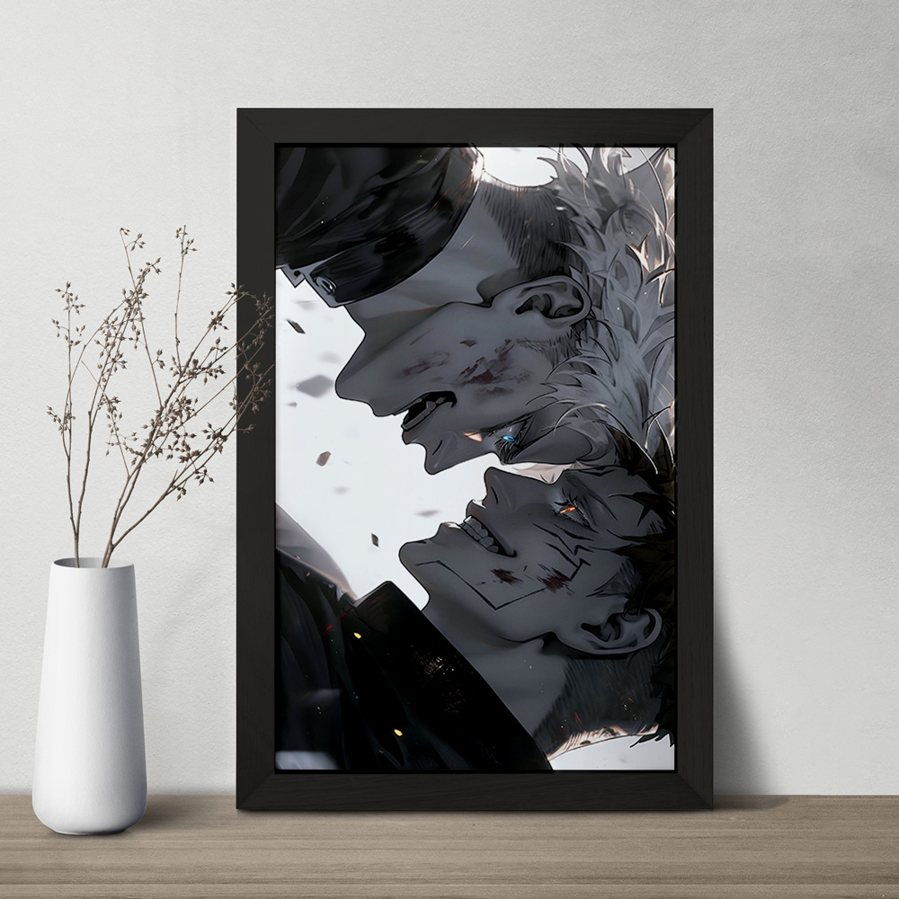 تابلو یا قاب عکس گوجو و سوگورو انیمه جوجوتسو کایسن خندالو در ابعاد مختلف با استفاده از بهترین برند پروفیل پی وی سی دو سانتی متری بسیار مرغوب، تولید شده اند و در مونتاژ و نصب آنها نهایت دقت در قرارگیری هر چه دقیق تر لبه ها به یکدیگر صورت گرفته است. همچنین در پشت قاب ها گیره ای برای اتصال راحت به دیوار تعبیه شده است. چاپ طرح تابلوی گوجو و سوگورو انیمه جوجوتسو کایسن با بالاترین کیفیت بوسیله چاپگرهای دیجیتال شش رنگ و کاغذ با کیفیت عکاسی انجام شده و بر روی آن شیشه ای با کیفیت و شفاف در سطح قاب قرار گرفته که از کاغذ عکس محافظت میکند. بسته بندی تابلوها جعبه های مقاوم و محکمی بوده که علاوه بر محافظتی که از بدنه قاب می کند، ظاهر جذابی دارد و تابلوی گوجو و سوگورو انیمه جوجوتسو کایسن را بدل به محصولی مناسب هدیه کرده است. تابلوهای خندالو با تنوع طرحی بسیار بالا شامل تابلو های دکوراتیو قابل استفاده در اتاق کودک، محل کار و منازل می باشد که سلیقه هر مخاطبی را پوشش می دهد، ضمن اینکه امکان تعویض عکس موجود در قاب وجود داشته و می توان عکس های خانوادگی و … را نیز در آن قرار داد.