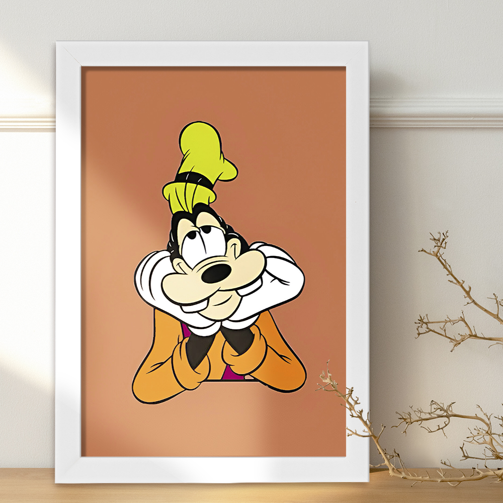 تابلو یا قاب عکس گوفی (Goofy) خندالو در ابعاد مختلف با استفاده از بهترین برند پروفیل پی وی سی دو سانتی متری بسیار مرغوب، تولید شده اند و در مونتاژ و نصب آنها نهایت دقت در قرارگیری هر چه دقیق تر لبه ها به یکدیگر صورت گرفته است. همچنین در پشت قاب ها گیره ای برای اتصال راحت به دیوار تعبیه شده است. چاپ طرح تابلوی گوفی (Goofy) با بالاترین کیفیت بوسیله چاپگرهای دیجیتال شش رنگ و کاغذ با کیفیت عکاسی انجام شده و بر روی آن شیشه ای با کیفیت و شفاف در سطح قاب قرار گرفته که از کاغذ عکس محافظت میکند. بسته بندی تابلوها جعبه های مقاوم و محکمی بوده که علاوه بر محافظتی که از بدنه قاب می کند، ظاهر جذابی دارد و تابلوی گوفی (Goofy) را بدل به محصولی مناسب هدیه کرده است. تابلوهای خندالو با تنوع طرحی بسیار بالا شامل تابلو های دکوراتیو قابل استفاده در اتاق کودک، محل کار و منازل می باشد که سلیقه هر مخاطبی را پوشش می دهد، ضمن اینکه امکان تعویض عکس موجود در قاب وجود داشته و می توان عکس های خانوادگی و … را نیز در آن قرار داد.