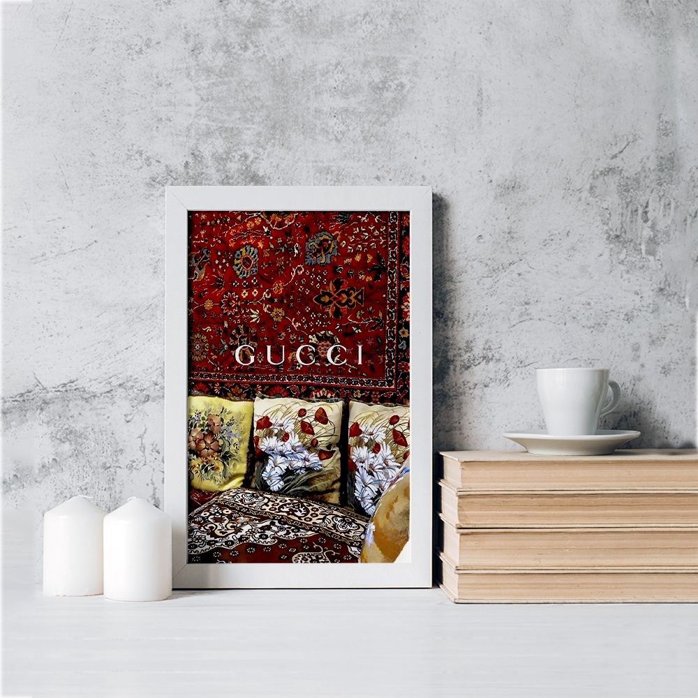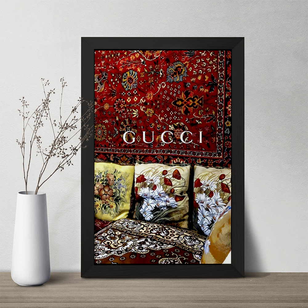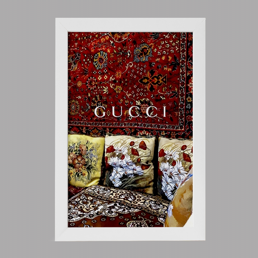 تابلو یا قاب عکس گوچی و نقش فرش خندالو در ابعاد مختلف با استفاده از بهترین برند پروفیل پی وی سی دو سانتی متری بسیار مرغوب، تولید شده اند و در مونتاژ و نصب آنها نهایت دقت در قرارگیری هر چه دقیق تر لبه ها به یکدیگر صورت گرفته است. همچنین در پشت قاب ها گیره ای برای اتصال راحت به دیوار تعبیه شده است.