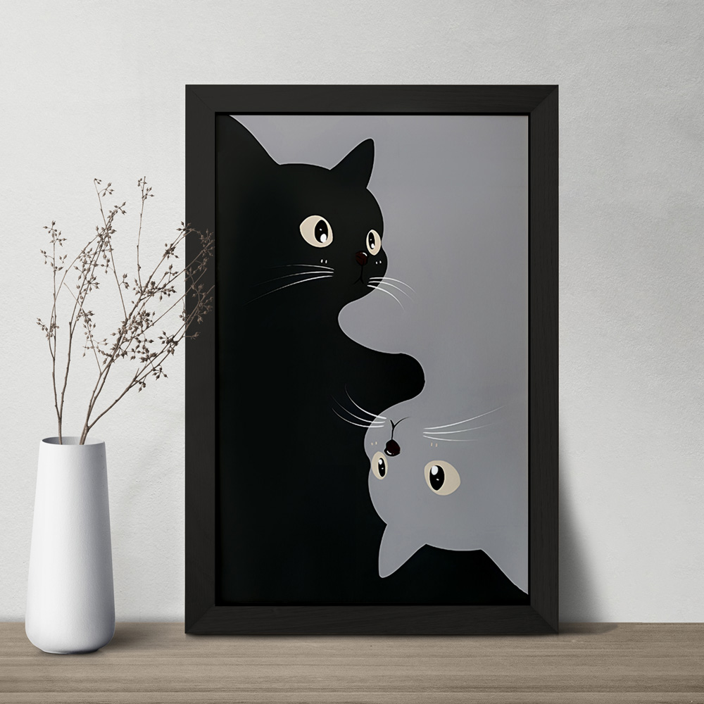 تابلو یا قاب عکس یین و یانگ گربه ای خندالو در ابعاد مختلف با استفاده از بهترین برند پروفیل پی وی سی دو سانتی متری بسیار مرغوب، تولید شده اند و در مونتاژ و نصب آنها نهایت دقت در قرارگیری هر چه دقیق تر لبه ها به یکدیگر صورت گرفته است. همچنین در پشت قاب ها گیره ای برای اتصال راحت به دیوار تعبیه شده است. چاپ طرح تابلوی یین و یانگ گربه ای با بالاترین کیفیت بوسیله چاپگرهای دیجیتال شش رنگ و کاغذ با کیفیت عکاسی انجام شده و بر روی آن شیشه ای با کیفیت و شفاف در سطح قاب قرار گرفته که از کاغذ عکس محافظت میکند. بسته بندی تابلوها جعبه های مقاوم و محکمی بوده که علاوه بر محافظتی که از بدنه قاب می کند، ظاهر جذابی دارد و تابلوی یین و یانگ گربه ای را بدل به محصولی مناسب هدیه کرده است. تابلوهای خندالو با تنوع طرحی بسیار بالا شامل تابلو های دکوراتیو قابل استفاده در اتاق کودک، محل کار و منازل می باشد که سلیقه هر مخاطبی را پوشش می دهد، ضمن اینکه امکان تعویض عکس موجود در قاب وجود داشته و می توان عکس های خانوادگی و … را نیز در آن قرار داد.