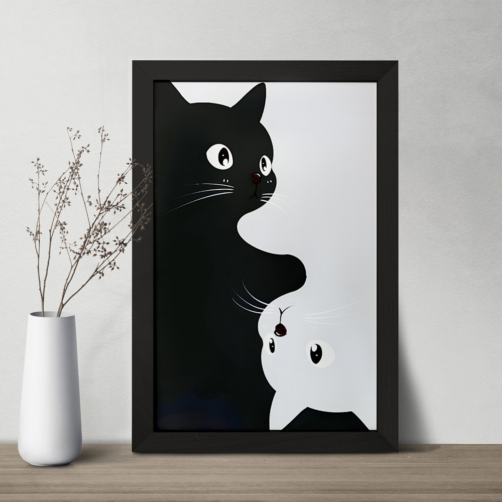 تابلو یا قاب عکس یین و یانگ گربه ای خندالو در ابعاد مختلف با استفاده از بهترین برند پروفیل پی وی سی دو سانتی متری بسیار مرغوب، تولید شده اند و در مونتاژ و نصب آنها نهایت دقت در قرارگیری هر چه دقیق تر لبه ها به یکدیگر صورت گرفته است. همچنین در پشت قاب ها گیره ای برای اتصال راحت به دیوار تعبیه شده است. چاپ طرح تابلوی یین و یانگ گربه ای با بالاترین کیفیت بوسیله چاپگرهای دیجیتال شش رنگ و کاغذ با کیفیت عکاسی انجام شده و بر روی آن شیشه ای با کیفیت و شفاف در سطح قاب قرار گرفته که از کاغذ عکس محافظت میکند. بسته بندی تابلوها جعبه های مقاوم و محکمی بوده که علاوه بر محافظتی که از بدنه قاب می کند، ظاهر جذابی دارد و تابلوی یین و یانگ گربه ای را بدل به محصولی مناسب هدیه کرده است. تابلوهای خندالو با تنوع طرحی بسیار بالا شامل تابلو های دکوراتیو قابل استفاده در اتاق کودک، محل کار و منازل می باشد که سلیقه هر مخاطبی را پوشش می دهد، ضمن اینکه امکان تعویض عکس موجود در قاب وجود داشته و می توان عکس های خانوادگی و … را نیز در آن قرار داد.