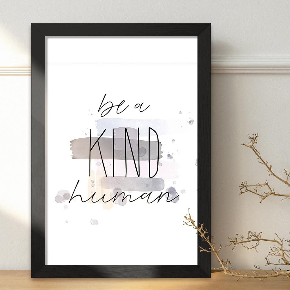 تابلو یا قاب عکس Be A Kind Human خندالو در ابعاد مختلف با استفاده از بهترین برند پروفیل پی وی سی دو سانتی متری بسیار مرغوب، تولید شده اند و در مونتاژ و نصب آنها نهایت دقت در قرارگیری هر چه دقیق تر لبه ها به یکدیگر صورت گرفته است. همچنین در پشت قاب ها گیره ای برای اتصال راحت به دیوار تعبیه شده است. چاپ طرح تابلوی Be A Kind Human با بالاترین کیفیت بوسیله چاپگرهای دیجیتال شش رنگ و کاغذ با کیفیت عکاسی انجام شده و بر روی آن شیشه ای با کیفیت و شفاف در سطح قاب قرار گرفته که از کاغذ عکس محافظت میکند. بسته بندی تابلوها جعبه های مقاوم و محکمی بوده که علاوه بر محافظتی که از بدنه قاب می کند، ظاهر جذابی دارد و تابلوی Be A Kind Human را بدل به محصولی مناسب هدیه کرده است. تابلوهای خندالو با تنوع طرحی بسیار بالا شامل تابلو های دکوراتیو قابل استفاده در اتاق کودک، محل کار و منازل می باشد که سلیقه هر مخاطبی را پوشش می دهد، ضمن اینکه امکان تعویض عکس موجود در قاب وجود داشته و می توان عکس های خانوادگی و … را نیز در آن قرار داد.
