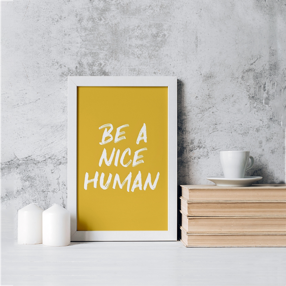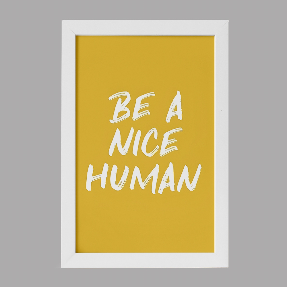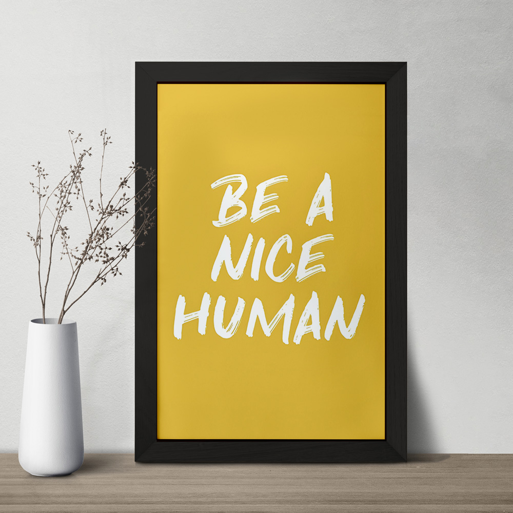 تابلو یا قاب عکس Be A Nice Human خندالو در ابعاد مختلف با استفاده از بهترین برند پروفیل پی وی سی دو سانتی متری بسیار مرغوب، تولید شده اند و در مونتاژ و نصب آنها نهایت دقت در قرارگیری هر چه دقیق تر لبه ها به یکدیگر صورت گرفته است. همچنین در پشت قاب ها گیره ای برای اتصال راحت به دیوار تعبیه شده است.
