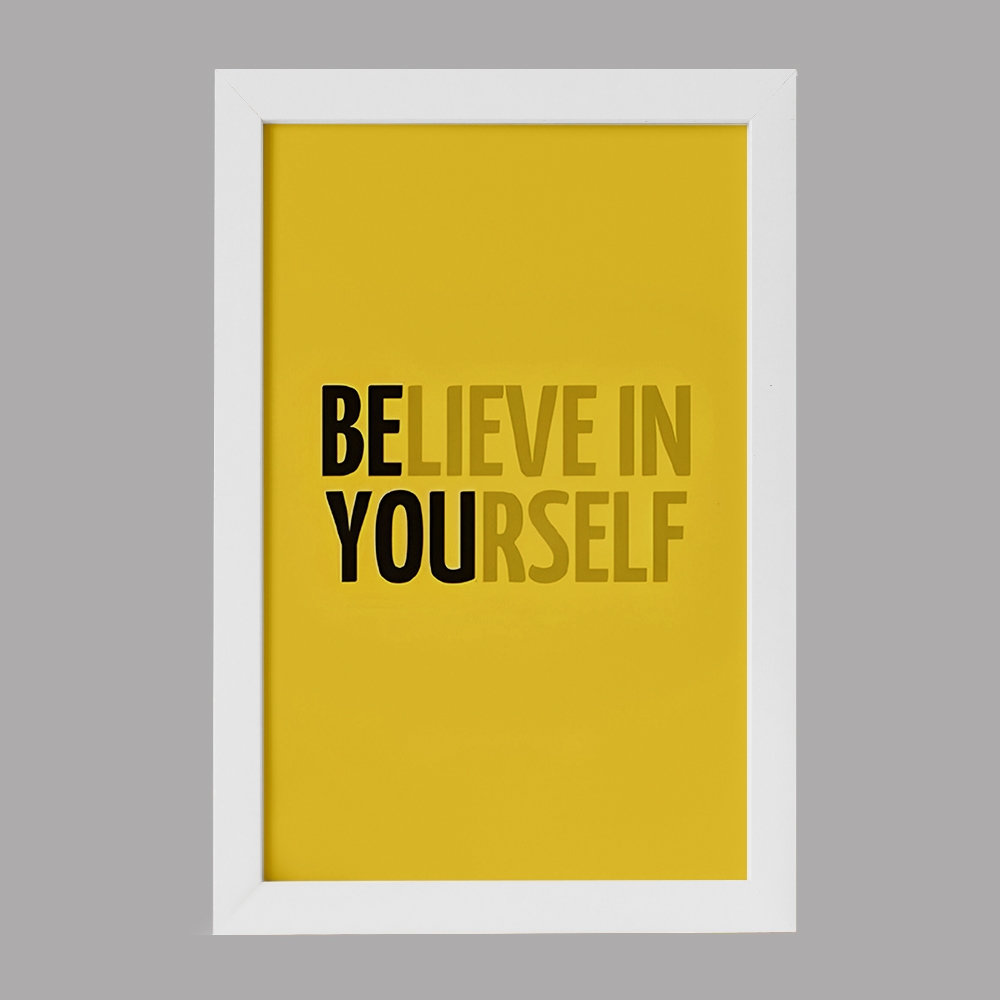 تابلو یا قاب عکس Believe In Yourself خندالو در ابعاد مختلف با استفاده از بهترین برند پروفیل پی وی سی دو سانتی متری بسیار مرغوب، تولید شده اند و در مونتاژ و نصب آنها نهایت دقت در قرارگیری هر چه دقیق تر لبه ها به یکدیگر صورت گرفته است. همچنین در پشت قاب ها گیره ای برای اتصال راحت به دیوار تعبیه شده است. چاپ طرح تابلوی Believe In Yourself با بالاترین کیفیت بوسیله چاپگرهای دیجیتال شش رنگ و کاغذ با کیفیت عکاسی انجام شده و بر روی آن شیشه ای با کیفیت و شفاف در سطح قاب قرار گرفته که از کاغذ عکس محافظت میکند. بسته بندی تابلوها جعبه های مقاوم و محکمی بوده که علاوه بر محافظتی که از بدنه قاب می کند، ظاهر جذابی دارد و تابلوی Believe In Yourself را بدل به محصولی مناسب هدیه کرده است. تابلوهای خندالو با تنوع طرحی بسیار بالا شامل تابلو های دکوراتیو قابل استفاده در اتاق کودک، محل کار و منازل می باشد که سلیقه هر مخاطبی را پوشش می دهد، ضمن اینکه امکان تعویض عکس موجود در قاب وجود داشته و می توان عکس های خانوادگی و … را نیز در آن قرار داد.