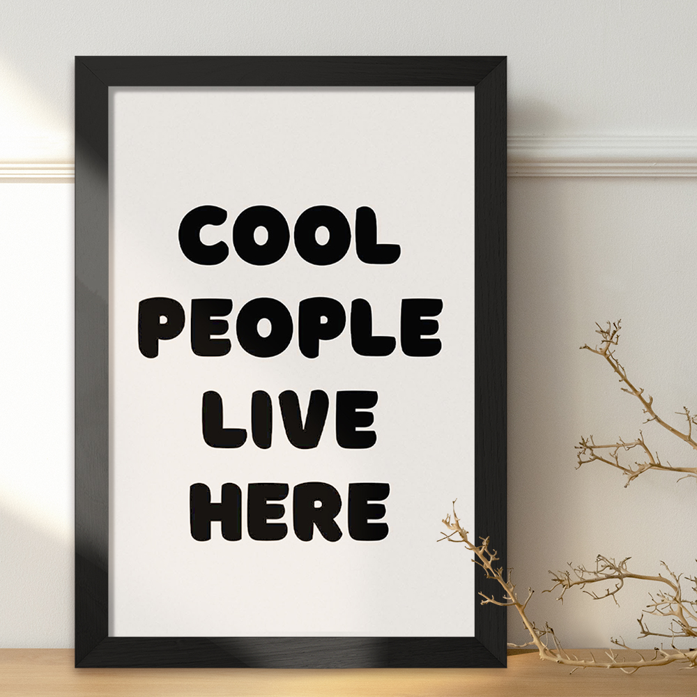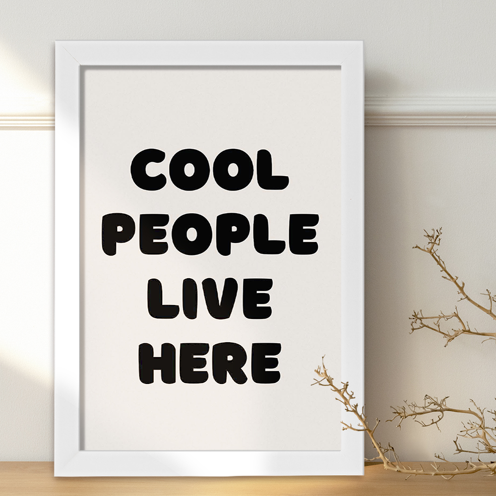 تابلو یا قاب عکس Cool People Live Here خندالو در ابعاد مختلف با استفاده از بهترین برند پروفیل پی وی سی دو سانتی متری بسیار مرغوب، تولید شده اند و در مونتاژ و نصب آنها نهایت دقت در قرارگیری هر چه دقیق تر لبه ها به یکدیگر صورت گرفته است. همچنین در پشت قاب ها گیره ای برای اتصال راحت به دیوار تعبیه شده است. چاپ طرح تابلوی Cool People Live Here با بالاترین کیفیت بوسیله چاپگرهای دیجیتال شش رنگ و کاغذ با کیفیت عکاسی انجام شده و بر روی آن شیشه ای با کیفیت و شفاف در سطح قاب قرار گرفته که از کاغذ عکس محافظت میکند. بسته بندی تابلوها جعبه های مقاوم و محکمی بوده که علاوه بر محافظتی که از بدنه قاب می کند، ظاهر جذابی دارد و تابلوی Cool People Live Here را بدل به محصولی مناسب هدیه کرده است. تابلوهای خندالو با تنوع طرحی بسیار بالا شامل تابلو های دکوراتیو قابل استفاده در اتاق کودک، محل کار و منازل می باشد که سلیقه هر مخاطبی را پوشش می دهد، ضمن اینکه امکان تعویض عکس موجود در قاب وجود داشته و می توان عکس های خانوادگی و … را نیز در آن قرار داد.