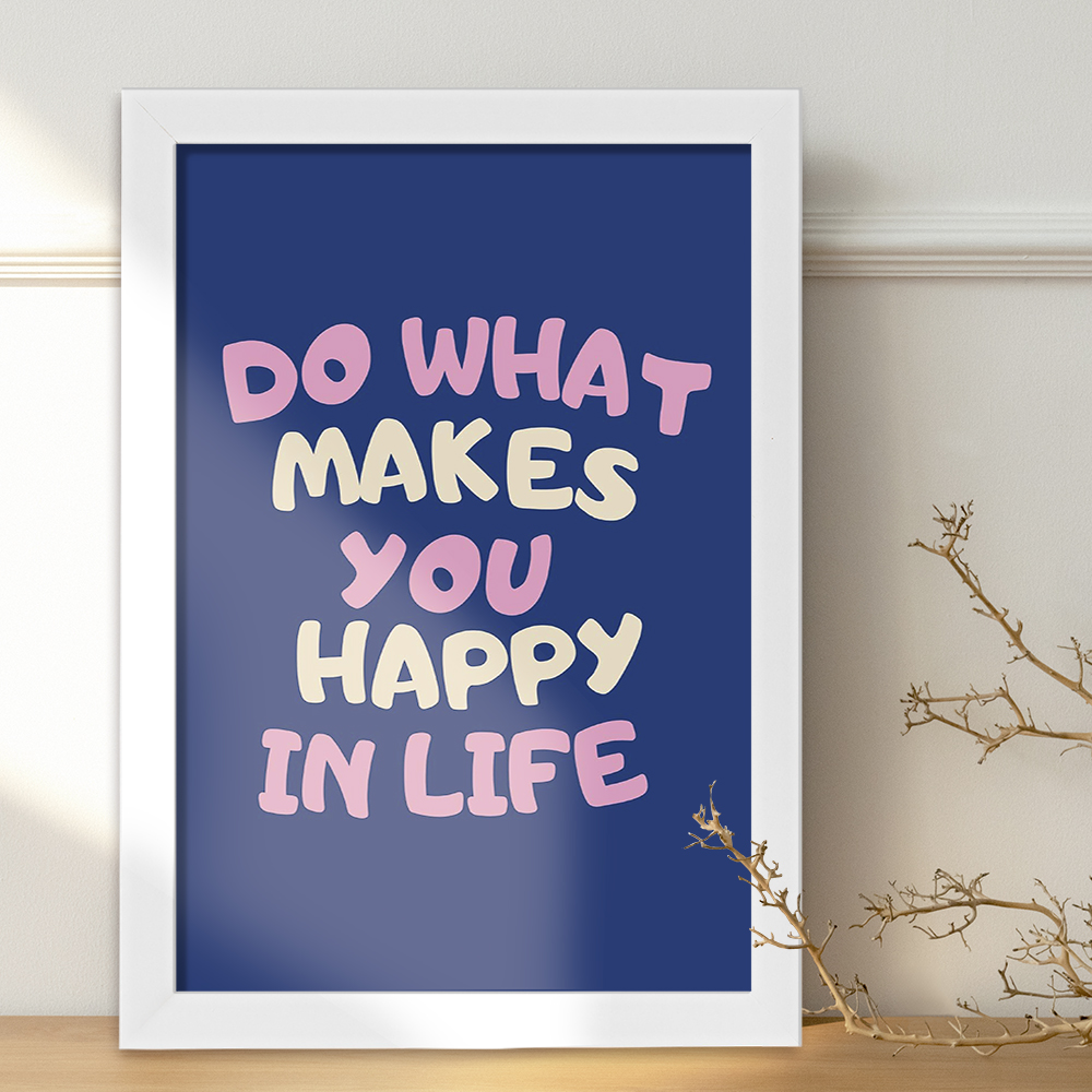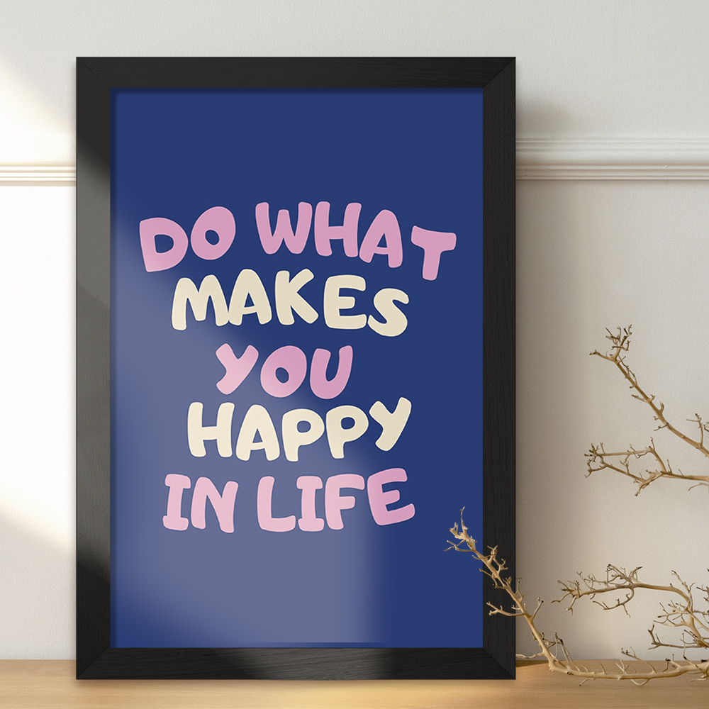 تابلو یا قاب عکس Do What Makes You Happy In Life خندالو در ابعاد مختلف با استفاده از بهترین برند پروفیل پی وی سی دو سانتی متری بسیار مرغوب، تولید شده اند و در مونتاژ و نصب آنها نهایت دقت در قرارگیری هر چه دقیق تر لبه ها به یکدیگر صورت گرفته است. همچنین در پشت قاب ها گیره ای برای اتصال راحت به دیوار تعبیه شده است. چاپ طرح تابلوی Do What Makes You Happy In Life با بالاترین کیفیت بوسیله چاپگرهای دیجیتال شش رنگ و کاغذ با کیفیت عکاسی انجام شده و بر روی آن شیشه ای با کیفیت و شفاف در سطح قاب قرار گرفته که از کاغذ عکس محافظت میکند. بسته بندی تابلوها جعبه های مقاوم و محکمی بوده که علاوه بر محافظتی که از بدنه قاب می کند، ظاهر جذابی دارد و تابلوی Do What Makes You Happy In Life را بدل به محصولی مناسب هدیه کرده است. تابلوهای خندالو با تنوع طرحی بسیار بالا شامل تابلو های دکوراتیو قابل استفاده در اتاق کودک، محل کار و منازل می باشد که سلیقه هر مخاطبی را پوشش می دهد، ضمن اینکه امکان تعویض عکس موجود در قاب وجود داشته و می توان عکس های خانوادگی و … را نیز در آن قرار داد.