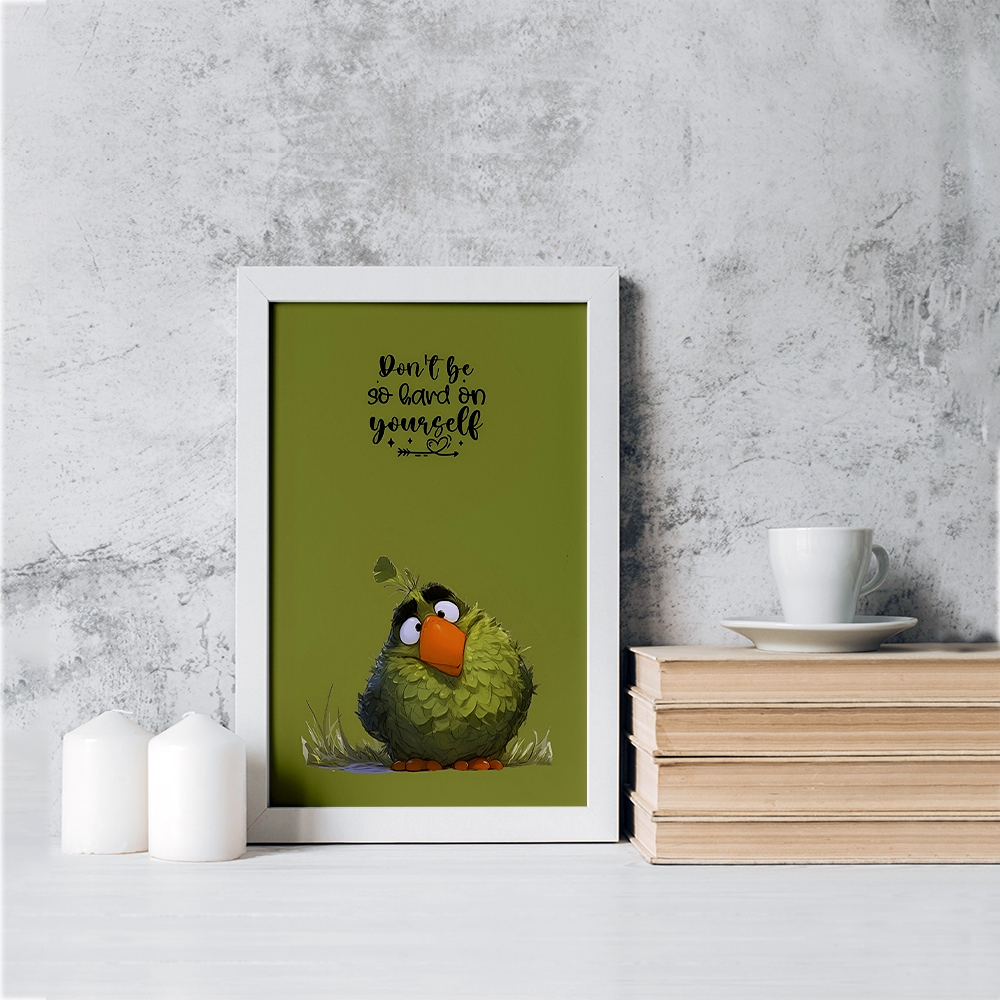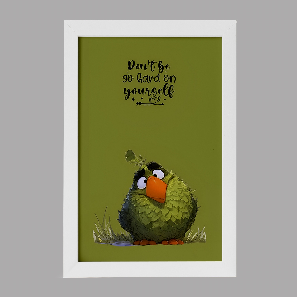 تابلو یا قاب عکس Don’t Be Go Hard On Yourself خندالو در ابعاد مختلف با استفاده از بهترین برند پروفیل پی وی سی دو سانتی متری بسیار مرغوب، تولید شده اند و در مونتاژ و نصب آنها نهایت دقت در قرارگیری هر چه دقیق تر لبه ها به یکدیگر صورت گرفته است. همچنین در پشت قاب ها گیره ای برای اتصال راحت به دیوار تعبیه شده است. چاپ طرح تابلوی Don’t Be Go Hard On Yourself با بالاترین کیفیت بوسیله چاپگرهای دیجیتال شش رنگ و کاغذ با کیفیت عکاسی انجام شده و بر روی آن شیشه ای با کیفیت و شفاف در سطح قاب قرار گرفته که از کاغذ عکس محافظت میکند. بسته بندی تابلوها جعبه های مقاوم و محکمی بوده که علاوه بر محافظتی که از بدنه قاب می کند، ظاهر جذابی دارد و تابلوی Don’t Be Go Hard On Yourself را بدل به محصولی مناسب هدیه کرده است. تابلوهای خندالو با تنوع طرحی بسیار بالا شامل تابلو های دکوراتیو قابل استفاده در اتاق کودک، محل کار و منازل می باشد که سلیقه هر مخاطبی را پوشش می دهد، ضمن اینکه امکان تعویض عکس موجود در قاب وجود داشته و می توان عکس های خانوادگی و … را نیز در آن قرار داد.