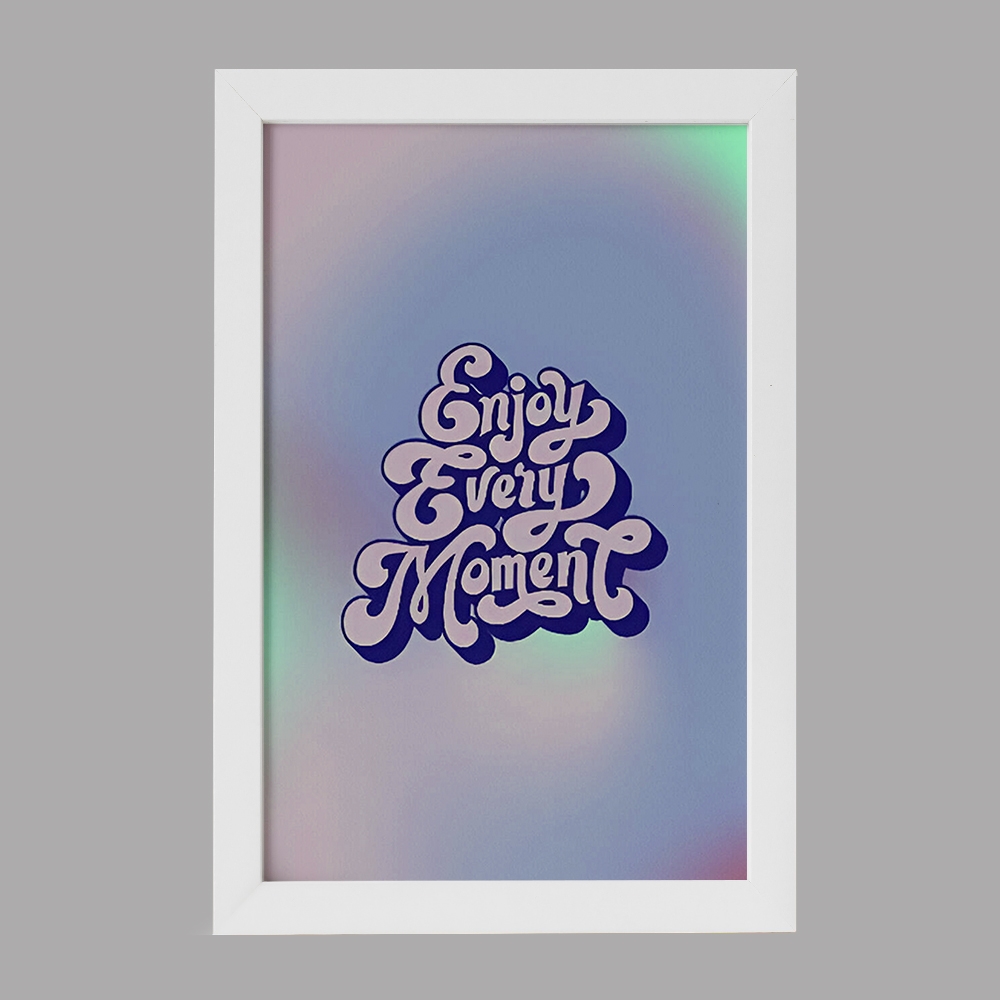 تابلو یا قاب عکس Enjoy Every Moment خندالو در ابعاد مختلف با استفاده از بهترین برند پروفیل پی وی سی دو سانتی متری بسیار مرغوب، تولید شده اند و در مونتاژ و نصب آنها نهایت دقت در قرارگیری هر چه دقیق تر لبه ها به یکدیگر صورت گرفته است. همچنین در پشت قاب ها گیره ای برای اتصال راحت به دیوار تعبیه شده است.