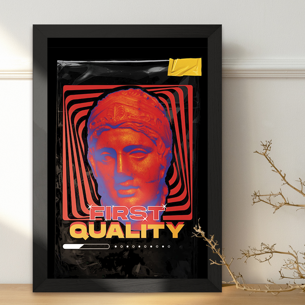 تابلو یا قاب عکس First Quality خندالو در ابعاد مختلف با استفاده از بهترین برند پروفیل پی وی سی دو سانتی متری بسیار مرغوب، تولید شده اند و در مونتاژ و نصب آنها نهایت دقت در قرارگیری هر چه دقیق تر لبه ها به یکدیگر صورت گرفته است. همچنین در پشت قاب ها گیره ای برای اتصال راحت به دیوار تعبیه شده است.