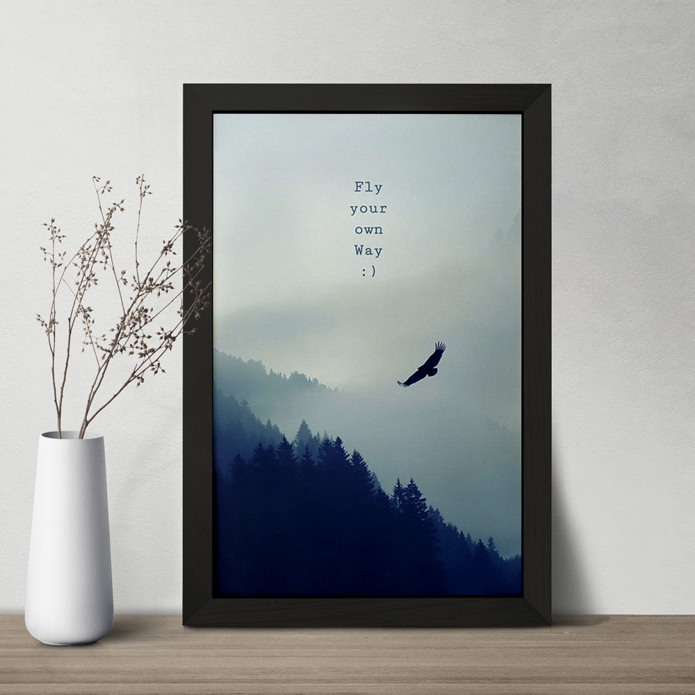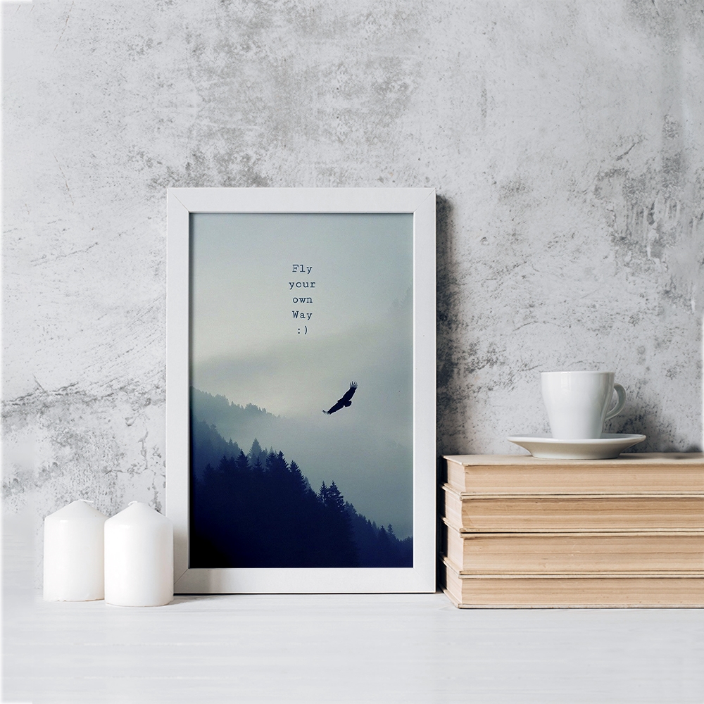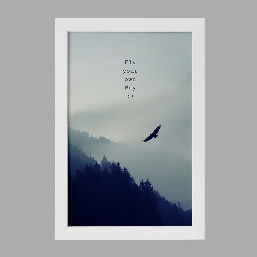 تابلو یا قاب عکس Fly Your Own Way خندالو در ابعاد مختلف با استفاده از بهترین برند پروفیل پی وی سی دو سانتی متری بسیار مرغوب، تولید شده اند و در مونتاژ و نصب آنها نهایت دقت در قرارگیری هر چه دقیق تر لبه ها به یکدیگر صورت گرفته است. همچنین در پشت قاب ها گیره ای برای اتصال راحت به دیوار تعبیه شده است. چاپ طرح تابلوی Fly Your Own Way با بالاترین کیفیت بوسیله چاپگرهای دیجیتال شش رنگ و کاغذ با کیفیت عکاسی انجام شده و بر روی آن شیشه ای با کیفیت و شفاف در سطح قاب قرار گرفته که از کاغذ عکس محافظت میکند. بسته بندی تابلوها جعبه های مقاوم و محکمی بوده که علاوه بر محافظتی که از بدنه قاب می کند، ظاهر جذابی دارد و تابلوی Fly Your Own Way را بدل به محصولی مناسب هدیه کرده است. تابلوهای خندالو با تنوع طرحی بسیار بالا شامل تابلو های دکوراتیو قابل استفاده در اتاق کودک، محل کار و منازل می باشد که سلیقه هر مخاطبی را پوشش می دهد، ضمن اینکه امکان تعویض عکس موجود در قاب وجود داشته و می توان عکس های خانوادگی و … را نیز در آن قرار داد.