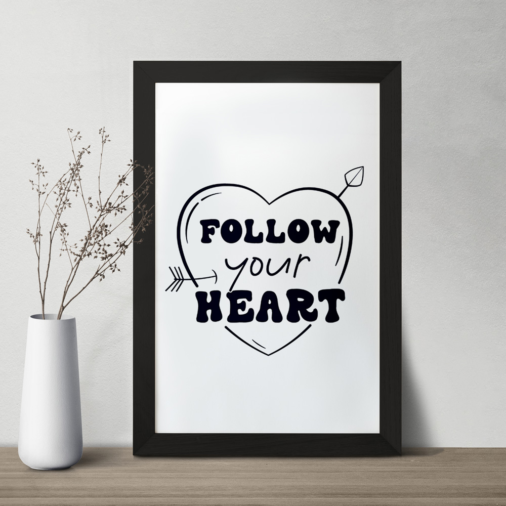 تابلو یا قاب عکس Follow Your Heart خندالو در ابعاد مختلف با استفاده از بهترین برند پروفیل پی وی سی دو سانتی متری بسیار مرغوب، تولید شده اند و در مونتاژ و نصب آنها نهایت دقت در قرارگیری هر چه دقیق تر لبه ها به یکدیگر صورت گرفته است. همچنین در پشت قاب ها گیره ای برای اتصال راحت به دیوار تعبیه شده است. چاپ طرح تابلوی Follow Your Heart با بالاترین کیفیت بوسیله چاپگرهای دیجیتال شش رنگ و کاغذ با کیفیت عکاسی انجام شده و بر روی آن شیشه ای با کیفیت و شفاف در سطح قاب قرار گرفته که از کاغذ عکس محافظت میکند. بسته بندی تابلوها جعبه های مقاوم و محکمی بوده که علاوه بر محافظتی که از بدنه قاب می کند، ظاهر جذابی دارد و تابلوی Follow Your Heart را بدل به محصولی مناسب هدیه کرده است. تابلوهای خندالو با تنوع طرحی بسیار بالا شامل تابلو های دکوراتیو قابل استفاده در اتاق کودک، محل کار و منازل می باشد که سلیقه هر مخاطبی را پوشش می دهد، ضمن اینکه امکان تعویض عکس موجود در قاب وجود داشته و می توان عکس های خانوادگی و … را نیز در آن قرار داد.