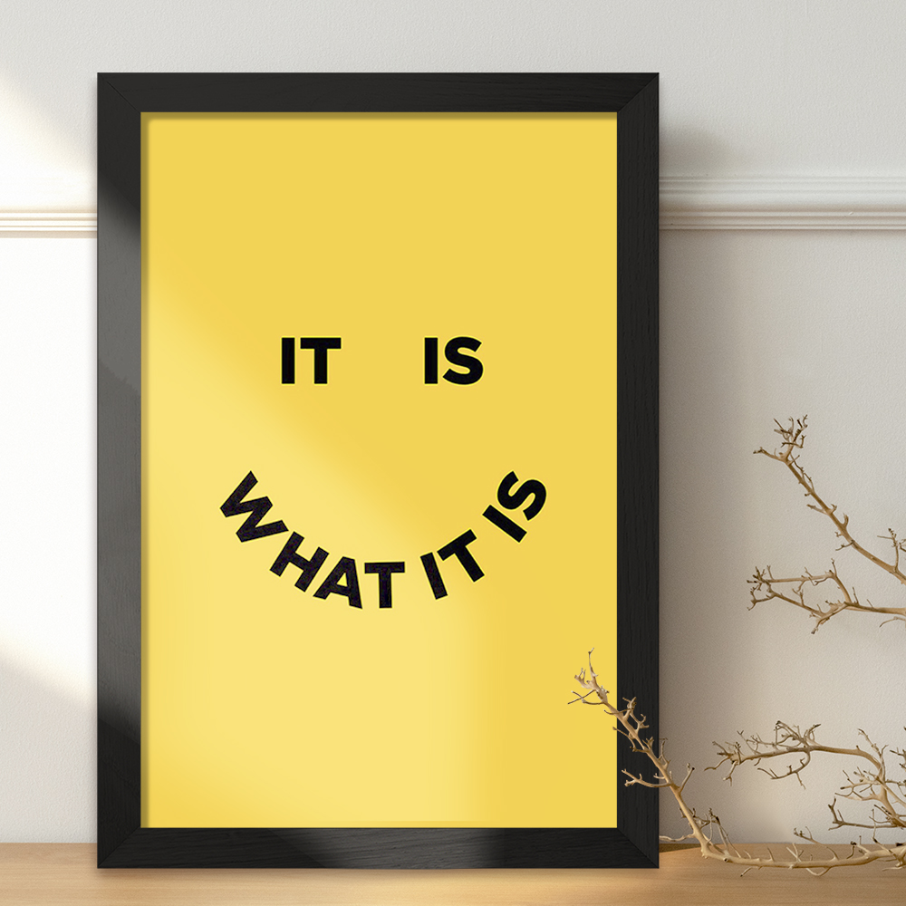 تابلو یا قاب عکس It Is What It Is خندالو در ابعاد مختلف با استفاده از بهترین برند پروفیل پی وی سی دو سانتی متری بسیار مرغوب، تولید شده اند و در مونتاژ و نصب آنها نهایت دقت در قرارگیری هر چه دقیق تر لبه ها به یکدیگر صورت گرفته است. همچنین در پشت قاب ها گیره ای برای اتصال راحت به دیوار تعبیه شده است. چاپ طرح تابلوی It Is What It Is با بالاترین کیفیت بوسیله چاپگرهای دیجیتال شش رنگ و کاغذ با کیفیت عکاسی انجام شده و بر روی آن شیشه ای با کیفیت و شفاف در سطح قاب قرار گرفته که از کاغذ عکس محافظت میکند. بسته بندی تابلوها جعبه های مقاوم و محکمی بوده که علاوه بر محافظتی که از بدنه قاب می کند، ظاهر جذابی دارد و تابلوی It Is What It Is را بدل به محصولی مناسب هدیه کرده است. تابلوهای خندالو با تنوع طرحی بسیار بالا شامل تابلو های دکوراتیو قابل استفاده در اتاق کودک، محل کار و منازل می باشد که سلیقه هر مخاطبی را پوشش می دهد، ضمن اینکه امکان تعویض عکس موجود در قاب وجود داشته و می توان عکس های خانوادگی و … را نیز در آن قرار داد.