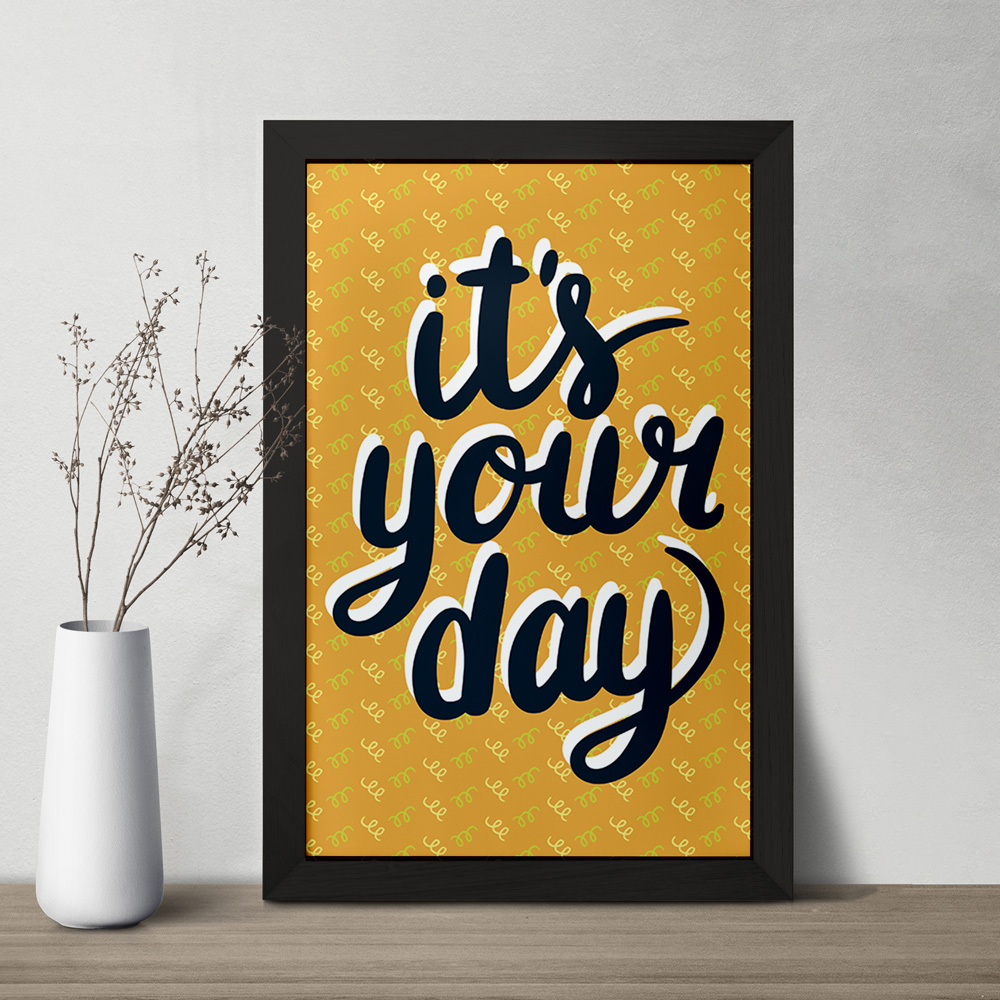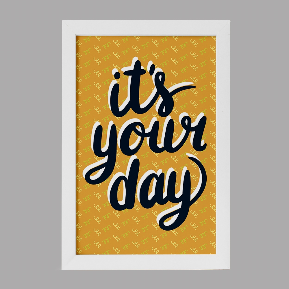 تابلو یا قاب عکس It’s Your Day خندالو در ابعاد مختلف با استفاده از بهترین برند پروفیل پی وی سی دو سانتی متری بسیار مرغوب، تولید شده اند و در مونتاژ و نصب آنها نهایت دقت در قرارگیری هر چه دقیق تر لبه ها به یکدیگر صورت گرفته است. همچنین در پشت قاب ها گیره ای برای اتصال راحت به دیوار تعبیه شده است. چاپ طرح تابلوی It’s Your Day با بالاترین کیفیت بوسیله چاپگرهای دیجیتال شش رنگ و کاغذ با کیفیت عکاسی انجام شده و بر روی آن شیشه ای با کیفیت و شفاف در سطح قاب قرار گرفته که از کاغذ عکس محافظت میکند. بسته بندی تابلوها جعبه های مقاوم و محکمی بوده که علاوه بر محافظتی که از بدنه قاب می کند، ظاهر جذابی دارد و تابلوی It’s Your Day را بدل به محصولی مناسب هدیه کرده است. تابلوهای خندالو با تنوع طرحی بسیار بالا شامل تابلو های دکوراتیو قابل استفاده در اتاق کودک، محل کار و منازل می باشد که سلیقه هر مخاطبی را پوشش می دهد، ضمن اینکه امکان تعویض عکس موجود در قاب وجود داشته و می توان عکس های خانوادگی و … را نیز در آن قرار داد.