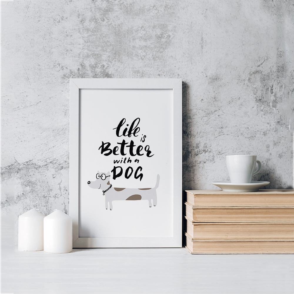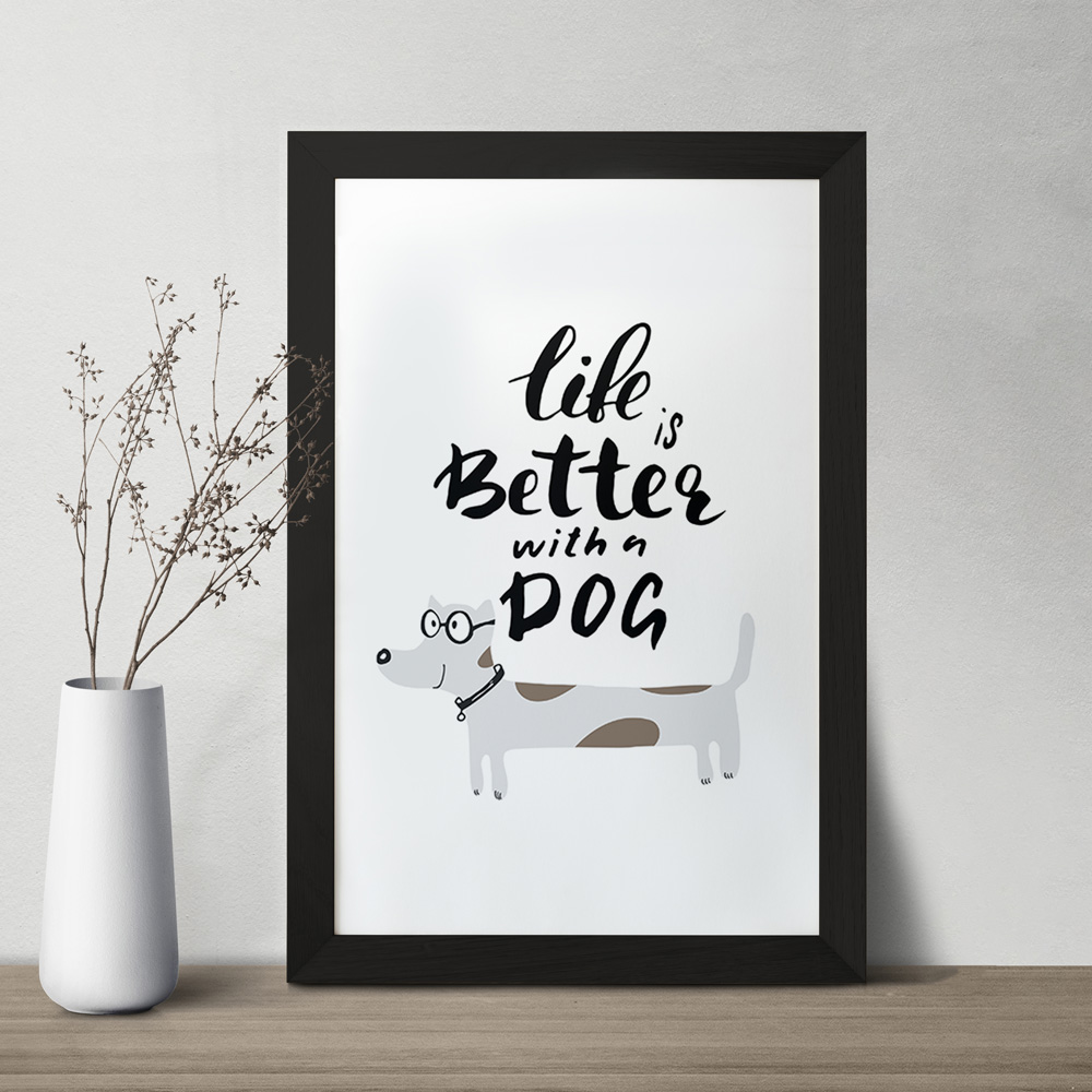 تابلو یا قاب عکس Life Is Better With Dog خندالو در ابعاد مختلف با استفاده از بهترین برند پروفیل پی وی سی دو سانتی متری بسیار مرغوب، تولید شده اند و در مونتاژ و نصب آنها نهایت دقت در قرارگیری هر چه دقیق تر لبه ها به یکدیگر صورت گرفته است. همچنین در پشت قاب ها گیره ای برای اتصال راحت به دیوار تعبیه شده است. چاپ طرح تابلوی Life Is Better With Dog با بالاترین کیفیت بوسیله چاپگرهای دیجیتال شش رنگ و کاغذ با کیفیت عکاسی انجام شده و بر روی آن شیشه ای با کیفیت و شفاف در سطح قاب قرار گرفته که از کاغذ عکس محافظت میکند. بسته بندی تابلوها جعبه های مقاوم و محکمی بوده که علاوه بر محافظتی که از بدنه قاب می کند، ظاهر جذابی دارد و تابلوی Life Is Better With Dog را بدل به محصولی مناسب هدیه کرده است. تابلوهای خندالو با تنوع طرحی بسیار بالا شامل تابلو های دکوراتیو قابل استفاده در اتاق کودک، محل کار و منازل می باشد که سلیقه هر مخاطبی را پوشش می دهد، ضمن اینکه امکان تعویض عکس موجود در قاب وجود داشته و می توان عکس های خانوادگی و … را نیز در آن قرار داد.