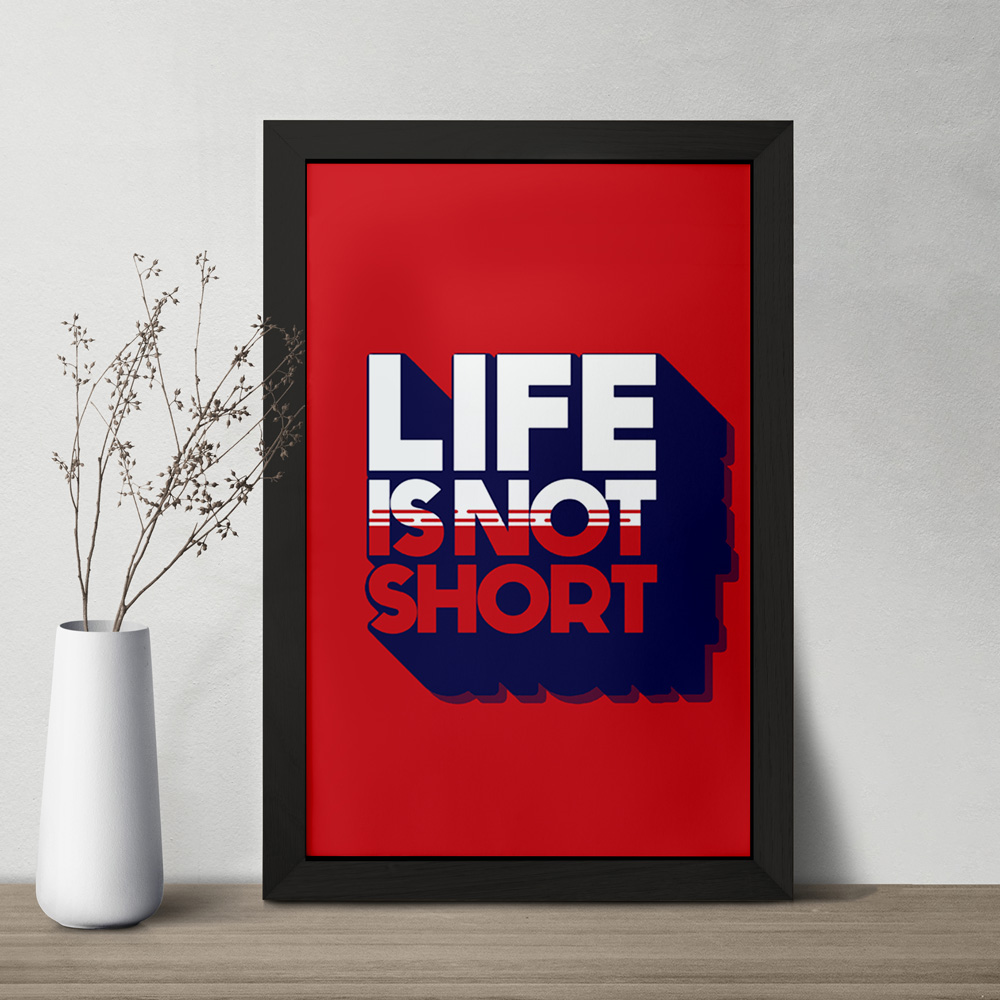 تابلو یا قاب عکس Life Is Not Short خندالو در ابعاد مختلف با استفاده از بهترین برند پروفیل پی وی سی دو سانتی متری بسیار مرغوب، تولید شده اند و در مونتاژ و نصب آنها نهایت دقت در قرارگیری هر چه دقیق تر لبه ها به یکدیگر صورت گرفته است. همچنین در پشت قاب ها گیره ای برای اتصال راحت به دیوار تعبیه شده است. چاپ طرح تابلوی Life Is Not Short با بالاترین کیفیت بوسیله چاپگرهای دیجیتال شش رنگ و کاغذ با کیفیت عکاسی انجام شده و بر روی آن شیشه ای با کیفیت و شفاف در سطح قاب قرار گرفته که از کاغذ عکس محافظت میکند. بسته بندی تابلوها جعبه های مقاوم و محکمی بوده که علاوه بر محافظتی که از بدنه قاب می کند، ظاهر جذابی دارد و تابلوی Life Is Not Short را بدل به محصولی مناسب هدیه کرده است. تابلوهای خندالو با تنوع طرحی بسیار بالا شامل تابلو های دکوراتیو قابل استفاده در اتاق کودک، محل کار و منازل می باشد که سلیقه هر مخاطبی را پوشش می دهد، ضمن اینکه امکان تعویض عکس موجود در قاب وجود داشته و می توان عکس های خانوادگی و … را نیز در آن قرار داد.