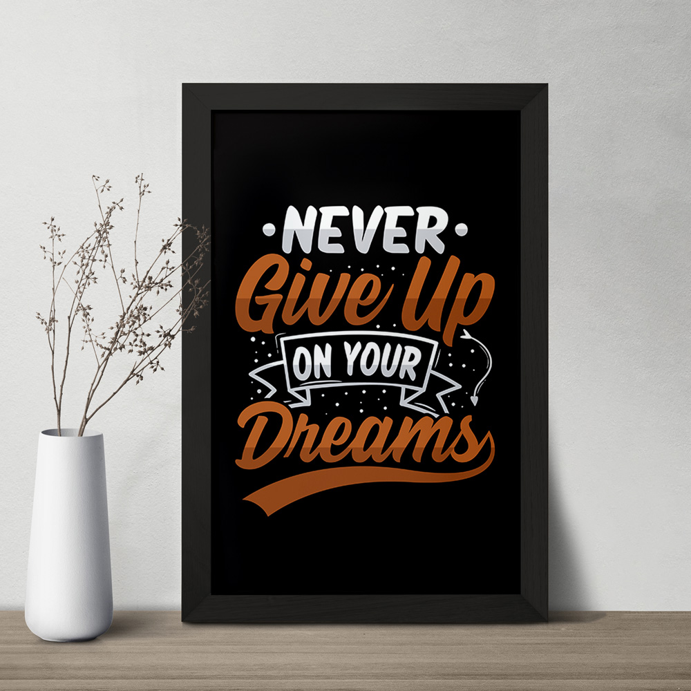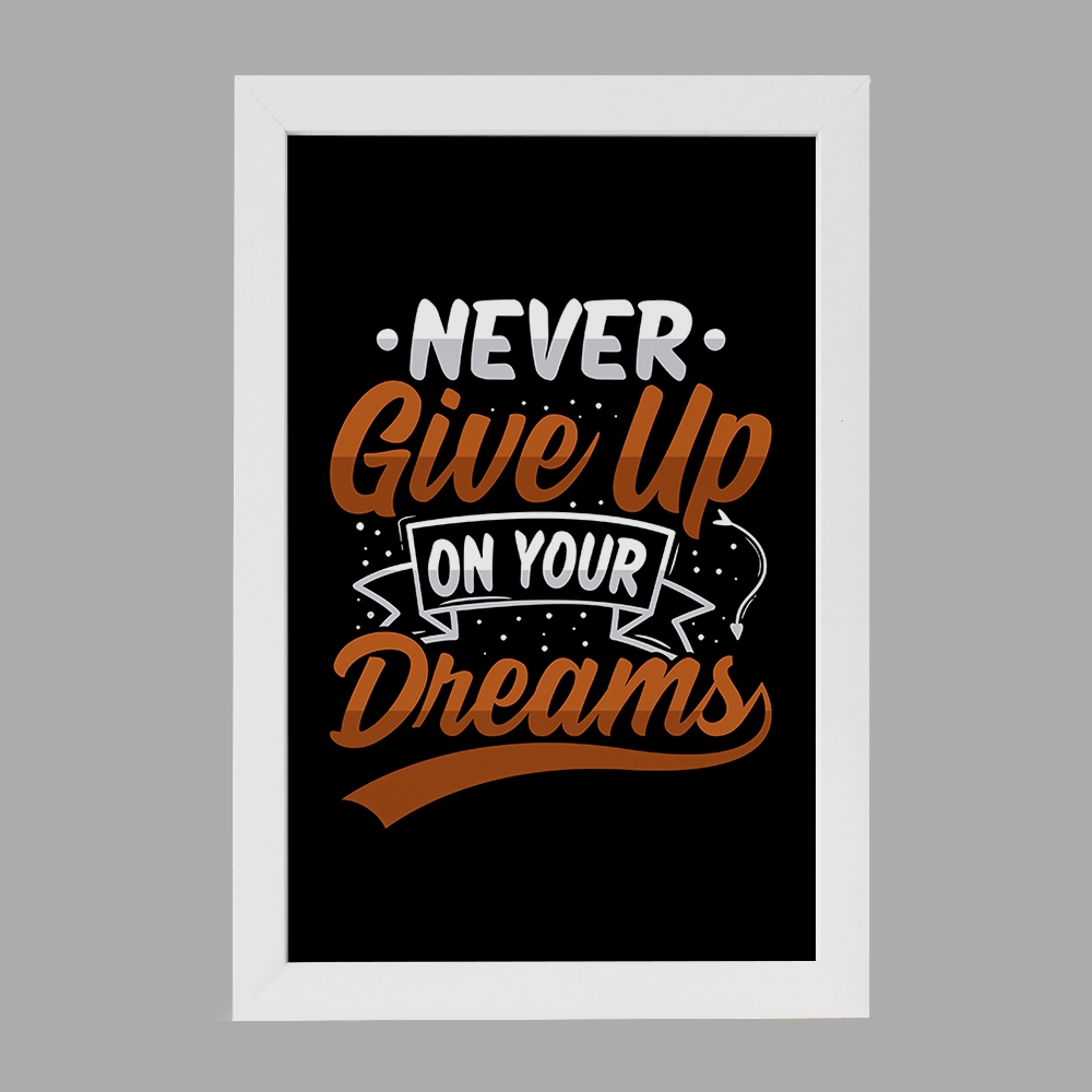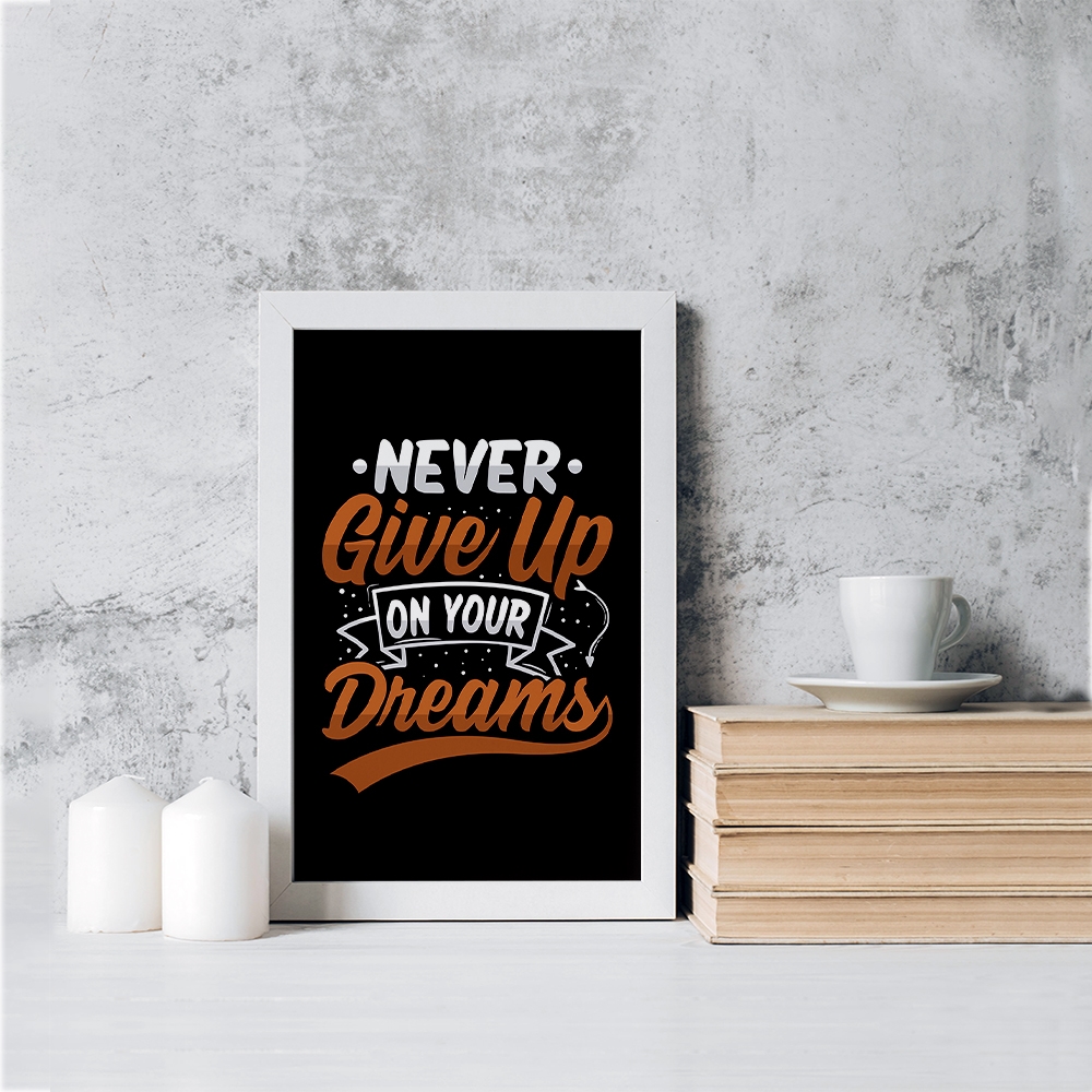 تابلو یا قاب عکس Never Give Up On Your Dreams خندالو در ابعاد مختلف با استفاده از بهترین برند پروفیل پی وی سی دو سانتی متری بسیار مرغوب، تولید شده اند و در مونتاژ و نصب آنها نهایت دقت در قرارگیری هر چه دقیق تر لبه ها به یکدیگر صورت گرفته است. همچنین در پشت قاب ها گیره ای برای اتصال راحت به دیوار تعبیه شده است. چاپ طرح تابلوی Never Give Up On Your Dreams با بالاترین کیفیت بوسیله چاپگرهای دیجیتال شش رنگ و کاغذ با کیفیت عکاسی انجام شده و بر روی آن شیشه ای با کیفیت و شفاف در سطح قاب قرار گرفته که از کاغذ عکس محافظت میکند. بسته بندی تابلوها جعبه های مقاوم و محکمی بوده که علاوه بر محافظتی که از بدنه قاب می کند، ظاهر جذابی دارد و تابلوی Never Give Up On Your Dreams را بدل به محصولی مناسب هدیه کرده است. تابلوهای خندالو با تنوع طرحی بسیار بالا شامل تابلو های دکوراتیو قابل استفاده در اتاق کودک، محل کار و منازل می باشد که سلیقه هر مخاطبی را پوشش می دهد، ضمن اینکه امکان تعویض عکس موجود در قاب وجود داشته و می توان عکس های خانوادگی و … را نیز در آن قرار داد.