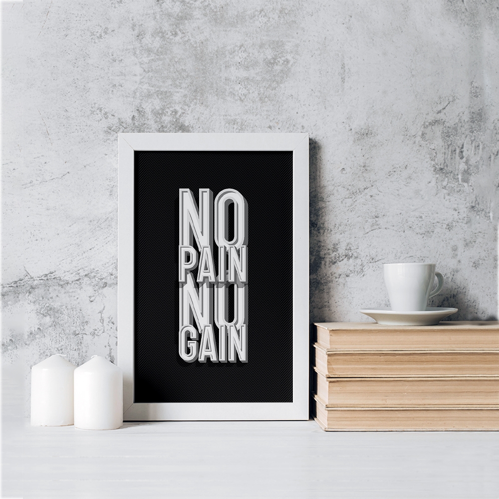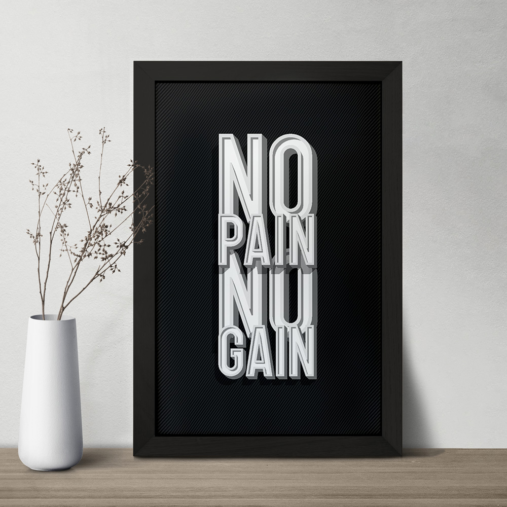 تابلو یا قاب عکس No Pain No Gain خندالو در ابعاد مختلف با استفاده از بهترین برند پروفیل پی وی سی دو سانتی متری بسیار مرغوب، تولید شده اند و در مونتاژ و نصب آنها نهایت دقت در قرارگیری هر چه دقیق تر لبه ها به یکدیگر صورت گرفته است. همچنین در پشت قاب ها گیره ای برای اتصال راحت به دیوار تعبیه شده است. چاپ طرح تابلوی No Pain No Gain با بالاترین کیفیت بوسیله چاپگرهای دیجیتال شش رنگ و کاغذ با کیفیت عکاسی انجام شده و بر روی آن شیشه ای با کیفیت و شفاف در سطح قاب قرار گرفته که از کاغذ عکس محافظت میکند. بسته بندی تابلوها جعبه های مقاوم و محکمی بوده که علاوه بر محافظتی که از بدنه قاب می کند، ظاهر جذابی دارد و تابلوی No Pain No Gain را بدل به محصولی مناسب هدیه کرده است. تابلوهای خندالو با تنوع طرحی بسیار بالا شامل تابلو های دکوراتیو قابل استفاده در اتاق کودک، محل کار و منازل می باشد که سلیقه هر مخاطبی را پوشش می دهد، ضمن اینکه امکان تعویض عکس موجود در قاب وجود داشته و می توان عکس های خانوادگی و … را نیز در آن قرار داد.