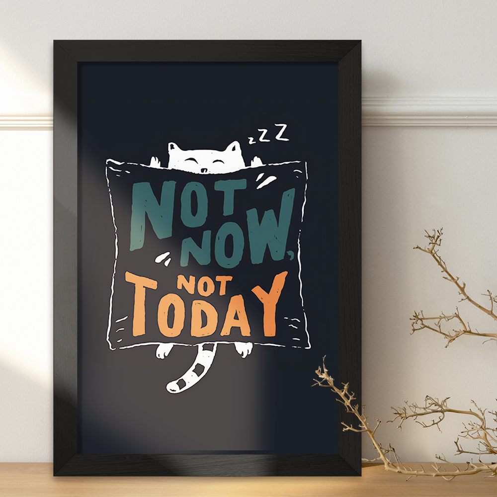 تابلو یا قاب عکس Not Now Not Today خندالو در ابعاد مختلف با استفاده از بهترین برند پروفیل پی وی سی دو سانتی متری بسیار مرغوب، تولید شده اند و در مونتاژ و نصب آنها نهایت دقت در قرارگیری هر چه دقیق تر لبه ها به یکدیگر صورت گرفته است. همچنین در پشت قاب ها گیره ای برای اتصال راحت به دیوار تعبیه شده است.