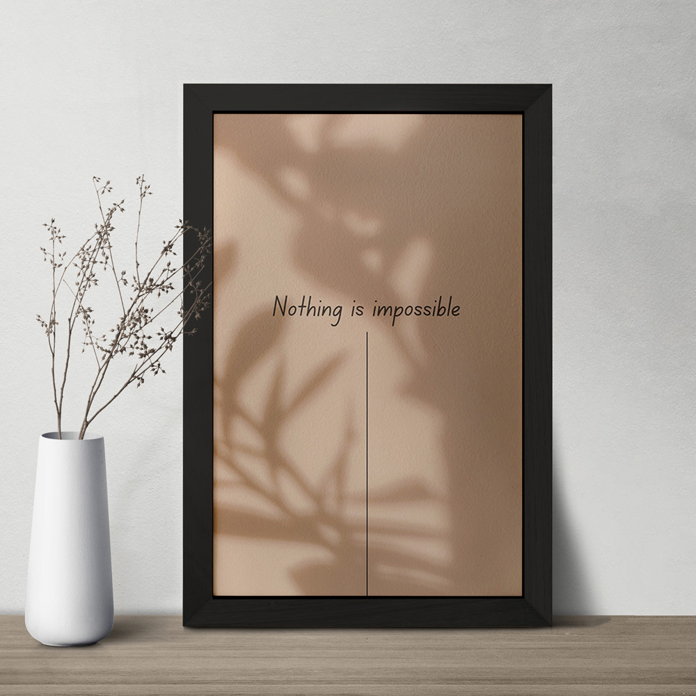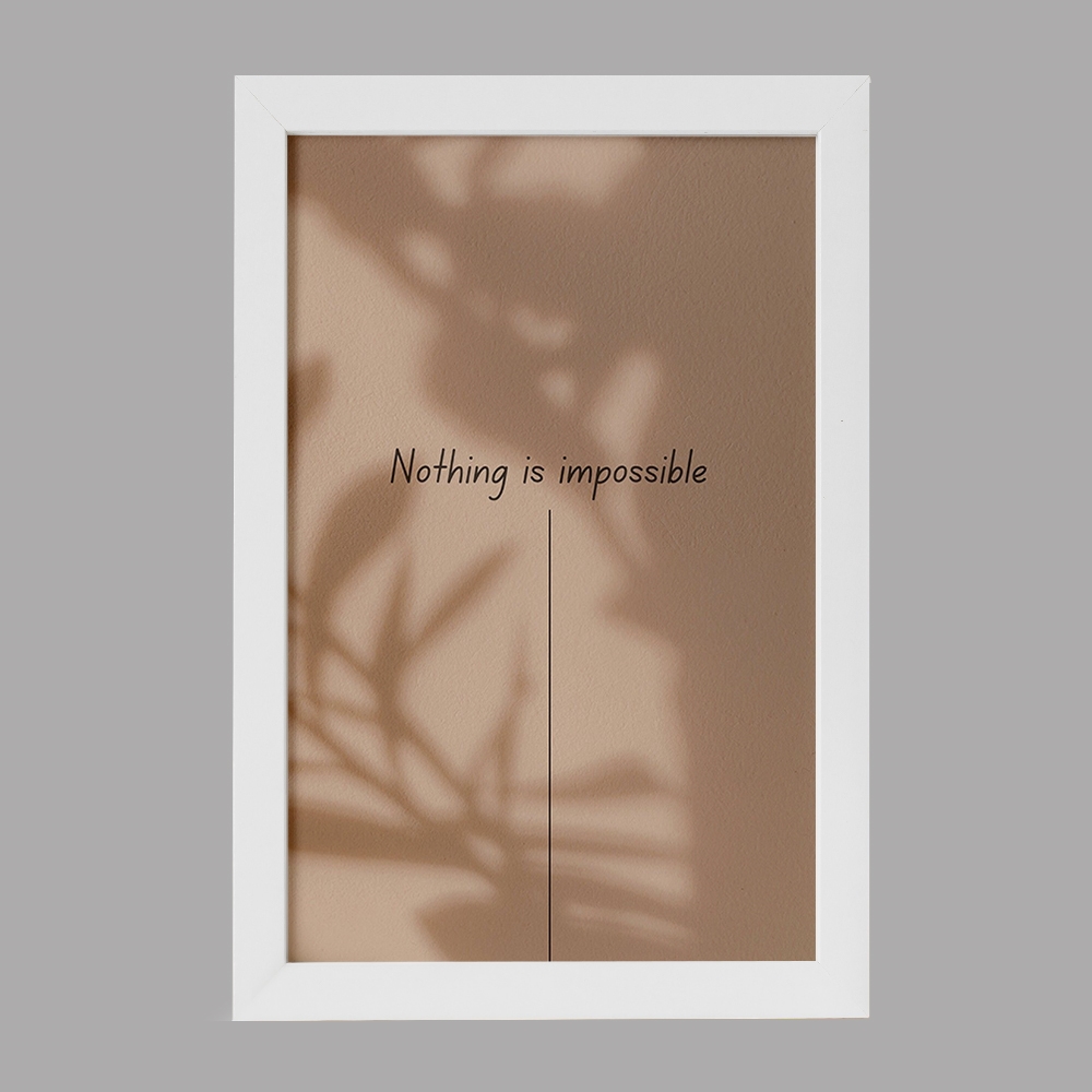تابلو یا قاب عکس Nothing Is Impossible خندالو در ابعاد مختلف با استفاده از بهترین برند پروفیل پی وی سی دو سانتی متری بسیار مرغوب، تولید شده اند و در مونتاژ و نصب آنها نهایت دقت در قرارگیری هر چه دقیق تر لبه ها به یکدیگر صورت گرفته است. همچنین در پشت قاب ها گیره ای برای اتصال راحت به دیوار تعبیه شده است. چاپ طرح تابلوی Nothing Is Impossible با بالاترین کیفیت بوسیله چاپگرهای دیجیتال شش رنگ و کاغذ با کیفیت عکاسی انجام شده و بر روی آن شیشه ای با کیفیت و شفاف در سطح قاب قرار گرفته که از کاغذ عکس محافظت میکند. بسته بندی تابلوها جعبه های مقاوم و محکمی بوده که علاوه بر محافظتی که از بدنه قاب می کند، ظاهر جذابی دارد و تابلوی Nothing Is Impossible را بدل به محصولی مناسب هدیه کرده است. تابلوهای خندالو با تنوع طرحی بسیار بالا شامل تابلو های دکوراتیو قابل استفاده در اتاق کودک، محل کار و منازل می باشد که سلیقه هر مخاطبی را پوشش می دهد، ضمن اینکه امکان تعویض عکس موجود در قاب وجود داشته و می توان عکس های خانوادگی و … را نیز در آن قرار داد.