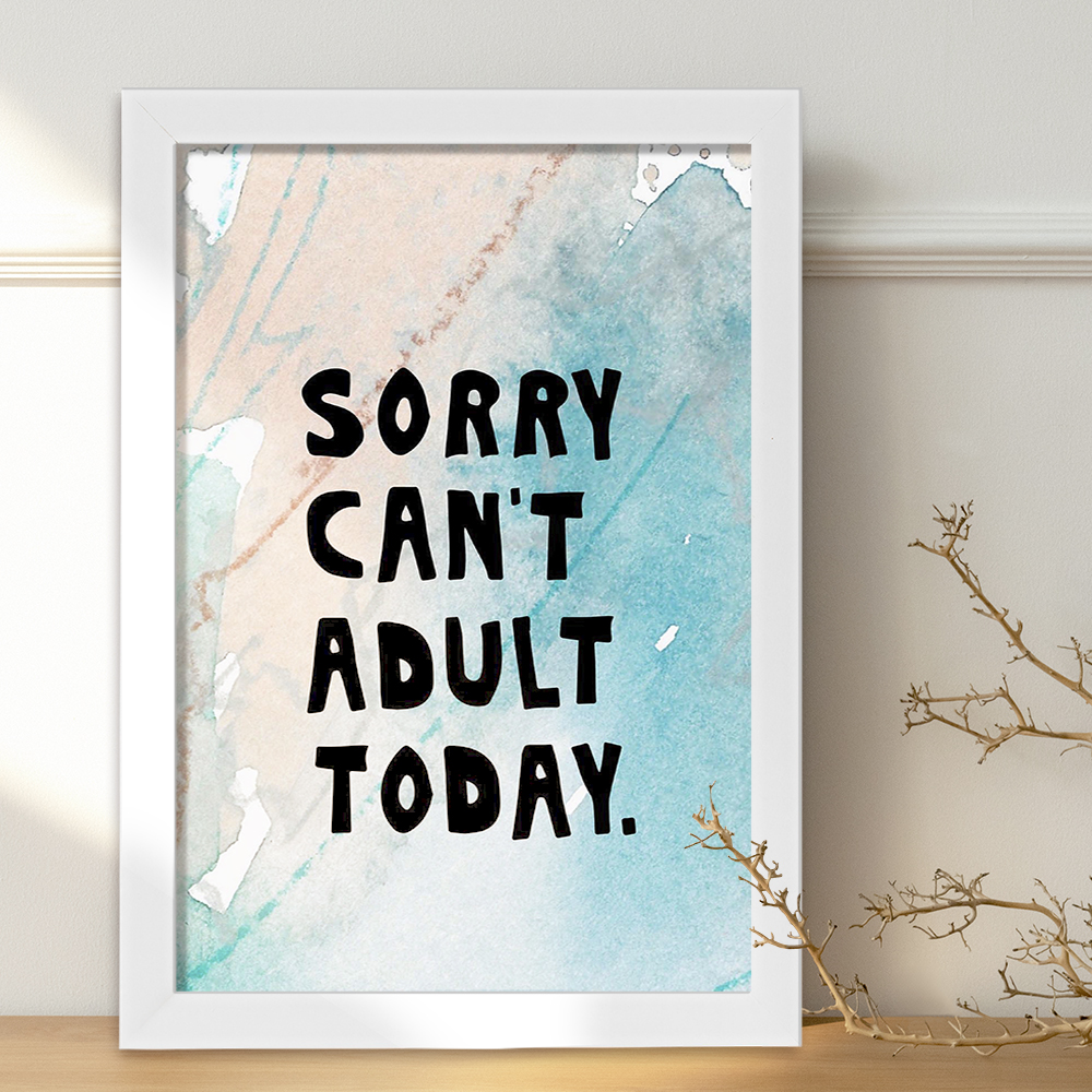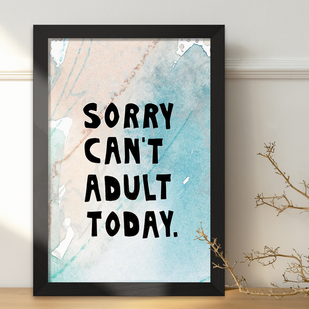تابلو یا قاب عکس Sorry Can’t Adult Today خندالو در ابعاد مختلف با استفاده از بهترین برند پروفیل پی وی سی دو سانتی متری بسیار مرغوب، تولید شده اند و در مونتاژ و نصب آنها نهایت دقت در قرارگیری هر چه دقیق تر لبه ها به یکدیگر صورت گرفته است. همچنین در پشت قاب ها گیره ای برای اتصال راحت به دیوار تعبیه شده است. چاپ طرح تابلوی Sorry Can’t Adult Today با بالاترین کیفیت بوسیله چاپگرهای دیجیتال شش رنگ و کاغذ با کیفیت عکاسی انجام شده و بر روی آن شیشه ای با کیفیت و شفاف در سطح قاب قرار گرفته که از کاغذ عکس محافظت میکند. بسته بندی تابلوها جعبه های مقاوم و محکمی بوده که علاوه بر محافظتی که از بدنه قاب می کند، ظاهر جذابی دارد و تابلوی Sorry Can’t Adult Today را بدل به محصولی مناسب هدیه کرده است. تابلوهای خندالو با تنوع طرحی بسیار بالا شامل تابلو های دکوراتیو قابل استفاده در اتاق کودک، محل کار و منازل می باشد که سلیقه هر مخاطبی را پوشش می دهد، ضمن اینکه امکان تعویض عکس موجود در قاب وجود داشته و می توان عکس های خانوادگی و … را نیز در آن قرار داد.