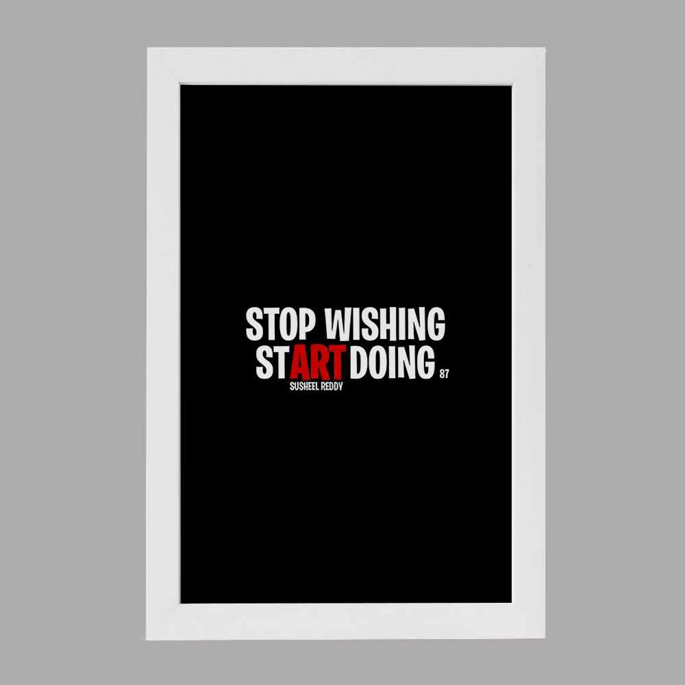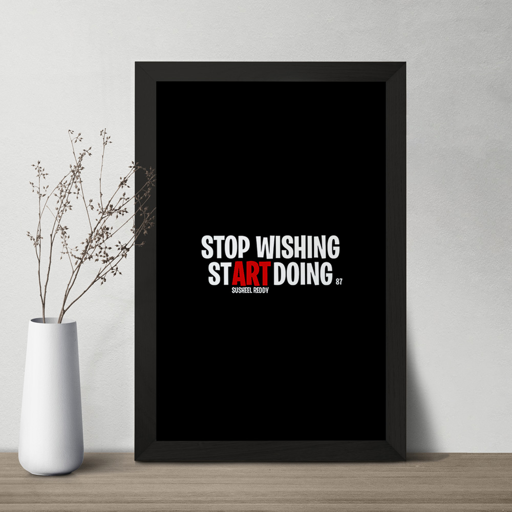 تابلو یا قاب عکس Stop Wishing Start Doing خندالو در ابعاد مختلف با استفاده از بهترین برند پروفیل پی وی سی دو سانتی متری بسیار مرغوب، تولید شده اند و در مونتاژ و نصب آنها نهایت دقت در قرارگیری هر چه دقیق تر لبه ها به یکدیگر صورت گرفته است. همچنین در پشت قاب ها گیره ای برای اتصال راحت به دیوار تعبیه شده است. چاپ طرح تابلوی Stop Wishing Start Doing با بالاترین کیفیت بوسیله چاپگرهای دیجیتال شش رنگ و کاغذ با کیفیت عکاسی انجام شده و بر روی آن شیشه ای با کیفیت و شفاف در سطح قاب قرار گرفته که از کاغذ عکس محافظت میکند. بسته بندی تابلوها جعبه های مقاوم و محکمی بوده که علاوه بر محافظتی که از بدنه قاب می کند، ظاهر جذابی دارد و تابلوی Stop Wishing Start Doing را بدل به محصولی مناسب هدیه کرده است. تابلوهای خندالو با تنوع طرحی بسیار بالا شامل تابلو های دکوراتیو قابل استفاده در اتاق کودک، محل کار و منازل می باشد که سلیقه هر مخاطبی را پوشش می دهد، ضمن اینکه امکان تعویض عکس موجود در قاب وجود داشته و می توان عکس های خانوادگی و … را نیز در آن قرار داد.