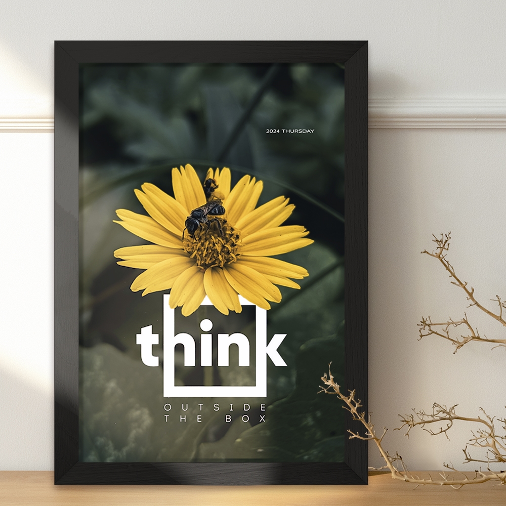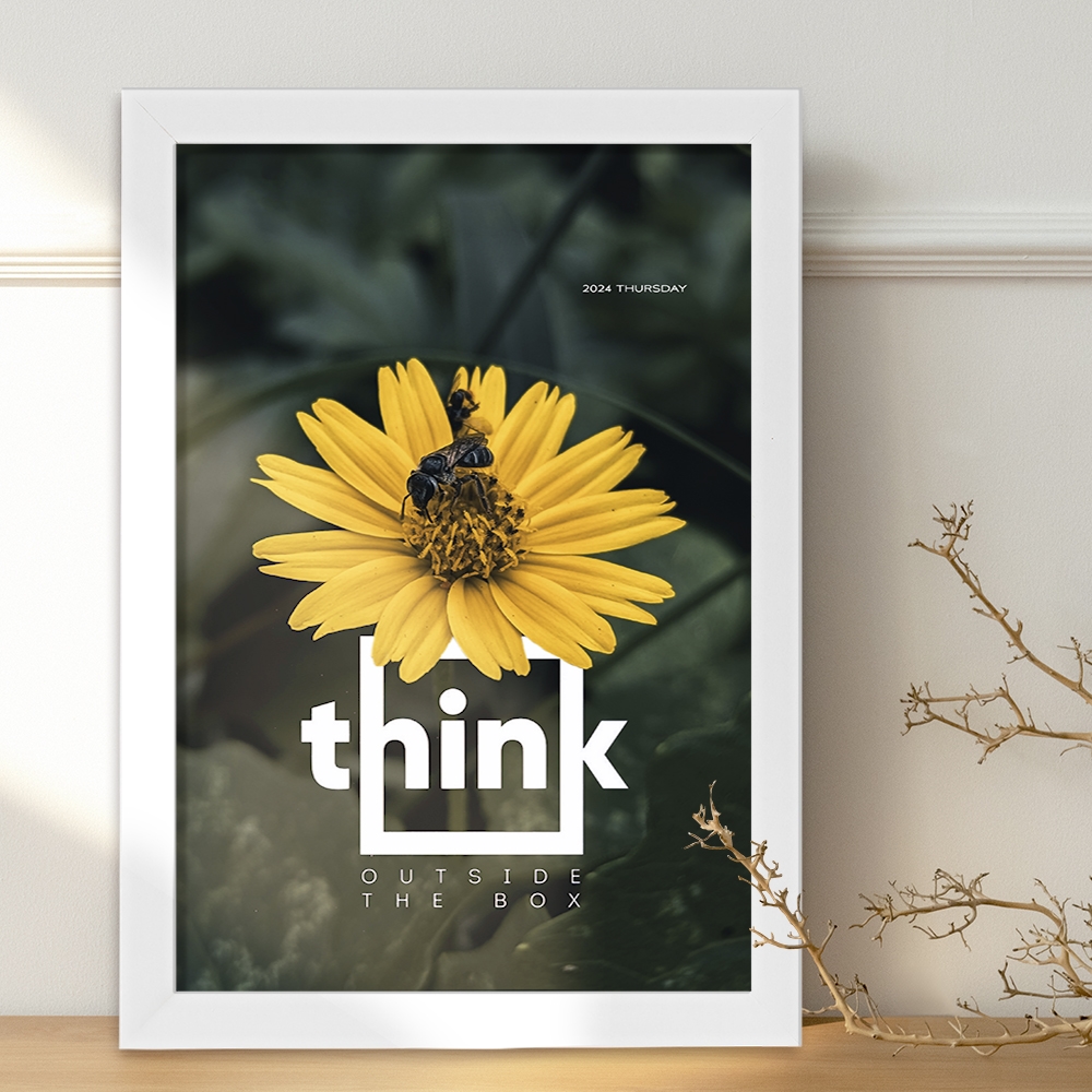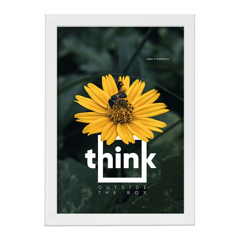تابلو یا قاب عکس Think Outside The Box خندالو در ابعاد مختلف با استفاده از بهترین برند پروفیل پی وی سی دو سانتی متری بسیار مرغوب، تولید شده اند و در مونتاژ و نصب آنها نهایت دقت در قرارگیری هر چه دقیق تر لبه ها به یکدیگر صورت گرفته است. همچنین در پشت قاب ها گیره ای برای اتصال راحت به دیوار تعبیه شده است. چاپ طرح تابلوی Think Outside The Box با بالاترین کیفیت بوسیله چاپگرهای دیجیتال شش رنگ و کاغذ با کیفیت عکاسی انجام شده و بر روی آن شیشه ای با کیفیت و شفاف در سطح قاب قرار گرفته که از کاغذ عکس محافظت میکند. بسته بندی تابلوها جعبه های مقاوم و محکمی بوده که علاوه بر محافظتی که از بدنه قاب می کند، ظاهر جذابی دارد و تابلوی Think Outside The Box را بدل به محصولی مناسب هدیه کرده است. تابلوهای خندالو با تنوع طرحی بسیار بالا شامل تابلو های دکوراتیو قابل استفاده در اتاق کودک، محل کار و منازل می باشد که سلیقه هر مخاطبی را پوشش می دهد، ضمن اینکه امکان تعویض عکس موجود در قاب وجود داشته و می توان عکس های خانوادگی و … را نیز در آن قرار داد.