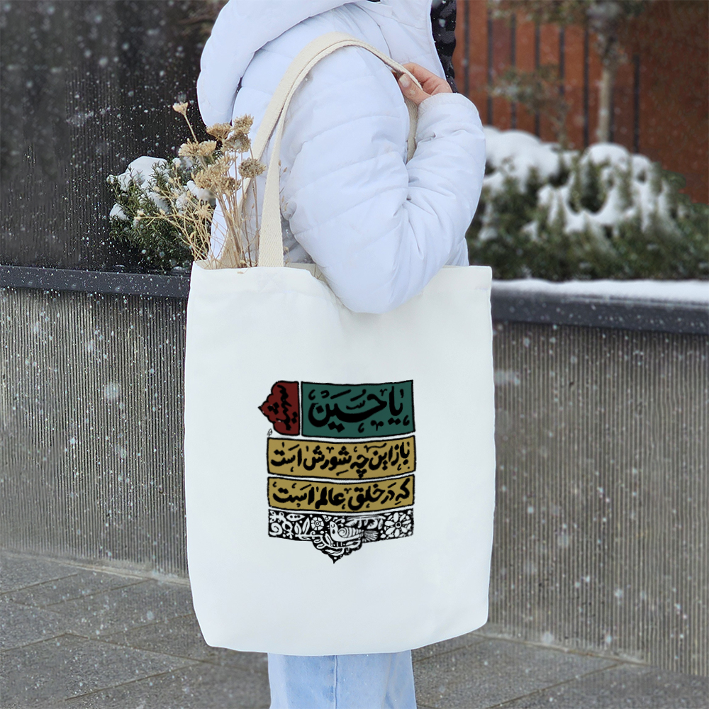 توت‌بگ‌ پارچه‌ای خندالو طرح امام‌حسین(ع) یک انتخاب هوشمندانه، کاربردی و دوستدار محیط‌زیست هستند که می‌توانند جایگزینی مناسب برای کیف‌های چرمی و همچنین جایگزین موثری برای کاهش مصرف کیسه‌های پلاستیکی باشند. این توت‌بگ‌ها از پارچه‌ی هازان با دوام و مقاومت بالا تولید شده‌اند که علاوه بر ظاهر زیبا، کیفیت و استحکام بالایی نیز دارند. یکی از ویژگی‌های مهم این محصول، بندهای نوار پنبه‌ای ۳ سانتی‌متری دوطرفه آن است که به صورت محکم به بدنه متصل شده‌اند. این طراحی باعث می‌شود بتوانید توت‌بگ خود را هم به صورت دستی و هم به شکل دوشی استفاده کنید، بدون اینکه نگران پاره شدن یا آسیب دیدن آن باشید. ابعاد این توت‌بگ ۴۵×۵۰ سانتی‌متر است و طراحی کف پاکتی ۱۱ سانتی‌متری آن کمک می‌کند که فضای بیشتری برای وسایل خود داشته باشید و کیف هنگام حمل، فرم بهتری بگیرد. برای افزایش کارایی، داخل توت‌بگ‌ها آسترکشی شده و یک جیب داخلی کوچک در آن تعبیه شده است که به شما این امکان را می‌دهد وسایل کوچک‌تر مانند گوشی، جاکلیدی یا سایر اقلام ضروری را به صورت جداگانه نگهداری کنید. چاپ روی توت‌بگ‌ امام‌حسین(ع) به‌صورت دیجیتال و باکیفیت بالا انجام شده که باعث دوام و ماندگاری طرح‌ها می‌شود. این محصول کاملاً قابل شستشو است و می‌توانید آن را بدون نگرانی از تغییر رنگ یا آسیب دیدن، هم با ماشین لباسشویی و هم به‌صورت دستی بشویید. یکی دیگر از مزایای توت‌بگ‌ خندالو طرح امام‌حسین(ع)، بسته‌بندی شیک و زیبای آن است که باعث می‌شود این محصول گزینه‌ای ایده‌آل برای هدیه دادن باشد. شما می‌توانید این توت‌بگ‌ها را به عنوان کیف روزمره، ساک خرید یا کیف همراه برای حمل اقلام ضروری خود استفاده کنید و در عین حال به کاهش مصرف پلاستیک و حفظ محیط‌زیست نیز کمک کنید. انتخابی زیبا، کاربردی و پایدار برای سبک زندگی شما!