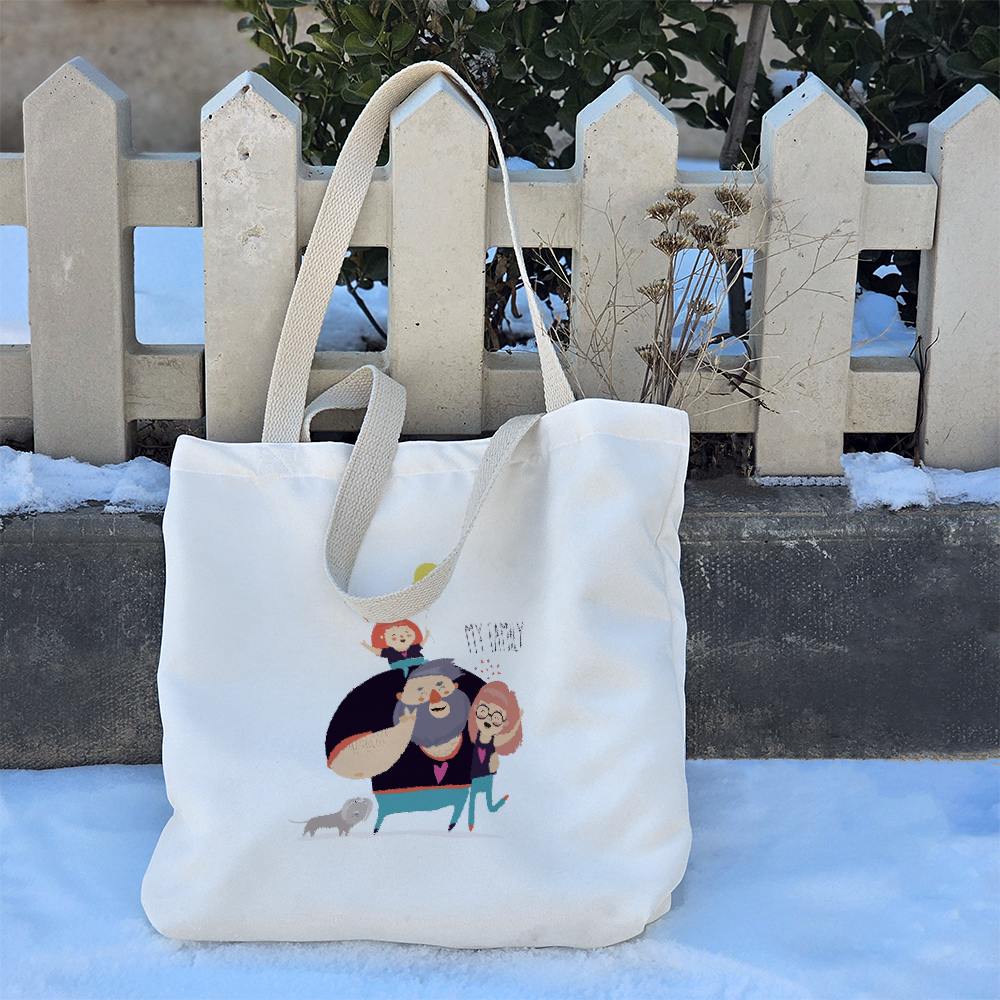 توتبگ پارچهای خندالو طرح خانواده یک انتخاب هوشمندانه، کاربردی و دوستدار محیطزیست هستند که میتوانند جایگزینی مناسب برای کیفهای چرمی و همچنین جایگزین موثری برای کاهش مصرف کیسههای پلاستیکی باشند. این توتبگها از پارچهی هازان با دوام و مقاومت بالا تولید شدهاند که علاوه بر ظاهر زیبا، کیفیت و استحکام بالایی نیز دارند. یکی از ویژگیهای مهم این محصول، بندهای نوار پنبهای ۳ سانتیمتری دوطرفه آن است که به صورت محکم به بدنه متصل شدهاند. این طراحی باعث میشود بتوانید توتبگ خود را هم به صورت دستی و هم به شکل دوشی استفاده کنید، بدون اینکه نگران پاره شدن یا آسیب دیدن آن باشید. ابعاد این توتبگ ۴۵×۵۰ سانتیمتر است و طراحی کف پاکتی ۱۱ سانتیمتری آن کمک میکند که فضای بیشتری برای وسایل خود داشته باشید و کیف هنگام حمل، فرم بهتری بگیرد. برای افزایش کارایی، داخل توتبگها آسترکشی شده و یک جیب داخلی کوچک در آن تعبیه شده است که به شما این امکان را میدهد وسایل کوچکتر مانند گوشی، جاکلیدی یا سایر اقلام ضروری را به صورت جداگانه نگهداری کنید. چاپ روی توتبگ خانواده بهصورت دیجیتال و باکیفیت بالا انجام شده که باعث دوام و ماندگاری طرحها میشود. این محصول کاملاً قابل شستشو است و میتوانید آن را بدون نگرانی از تغییر رنگ یا آسیب دیدن، هم با ماشین لباسشویی و هم بهصورت دستی بشویید. یکی دیگر از مزایای توتبگ خندالو طرح خانواده ، بستهبندی شیک و زیبای آن است که باعث میشود این محصول گزینهای ایدهآل برای هدیه دادن باشد. شما میتوانید این توتبگها را به عنوان کیف روزمره، ساک خرید یا کیف همراه برای حمل اقلام ضروری خود استفاده کنید و در عین حال به کاهش مصرف پلاستیک و حفظ محیطزیست نیز کمک کنید. انتخابی زیبا، کاربردی و پایدار برای سبک زندگی شما!