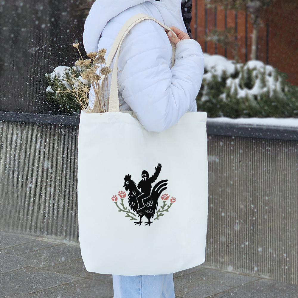 توت‌بگ‌ پارچه‌ای خندالو طرح خروس سواری یک انتخاب هوشمندانه، کاربردی و دوستدار محیط‌زیست هستند که می‌توانند جایگزینی مناسب برای کیف‌های چرمی و همچنین جایگزین موثری برای کاهش مصرف کیسه‌های پلاستیکی باشند. این توت‌بگ‌ها از پارچه‌ی هازان با دوام و مقاومت بالا تولید شده‌اند که علاوه بر ظاهر زیبا، کیفیت و استحکام بالایی نیز دارند. یکی از ویژگی‌های مهم این محصول، بندهای نوار پنبه‌ای ۳ سانتی‌متری دوطرفه آن است که به صورت محکم به بدنه متصل شده‌اند. این طراحی باعث می‌شود بتوانید توت‌بگ خود را هم به صورت دستی و هم به شکل دوشی استفاده کنید، بدون اینکه نگران پاره شدن یا آسیب دیدن آن باشید. ابعاد این توت‌بگ ۴۵×۵۰ سانتی‌متر است و طراحی کف پاکتی ۱۱ سانتی‌متری آن کمک می‌کند که فضای بیشتری برای وسایل خود داشته باشید و کیف هنگام حمل، فرم بهتری بگیرد. برای افزایش کارایی، داخل توت‌بگ‌ها آسترکشی شده و یک جیب داخلی کوچک در آن تعبیه شده است که به شما این امکان را می‌دهد وسایل کوچک‌تر مانند گوشی، جاکلیدی یا سایر اقلام ضروری را به صورت جداگانه نگهداری کنید. چاپ روی توت‌بگ‌ خروس سواری به‌صورت دیجیتال و باکیفیت بالا انجام شده که باعث دوام و ماندگاری طرح‌ها می‌شود. این محصول کاملاً قابل شستشو است و می‌توانید آن را بدون نگرانی از تغییر رنگ یا آسیب دیدن، هم با ماشین لباسشویی و هم به‌صورت دستی بشویید. یکی دیگر از مزایای توت‌بگ‌ خندالو طرح خروس سواری، بسته‌بندی شیک و زیبای آن است که باعث می‌شود این محصول گزینه‌ای ایده‌آل برای هدیه دادن باشد. شما می‌توانید این توت‌بگ‌ها را به عنوان کیف روزمره، ساک خرید یا کیف همراه برای حمل اقلام ضروری خود استفاده کنید و در عین حال به کاهش مصرف پلاستیک و حفظ محیط‌زیست نیز کمک کنید. انتخابی زیبا، کاربردی و پایدار برای سبک زندگی شما!